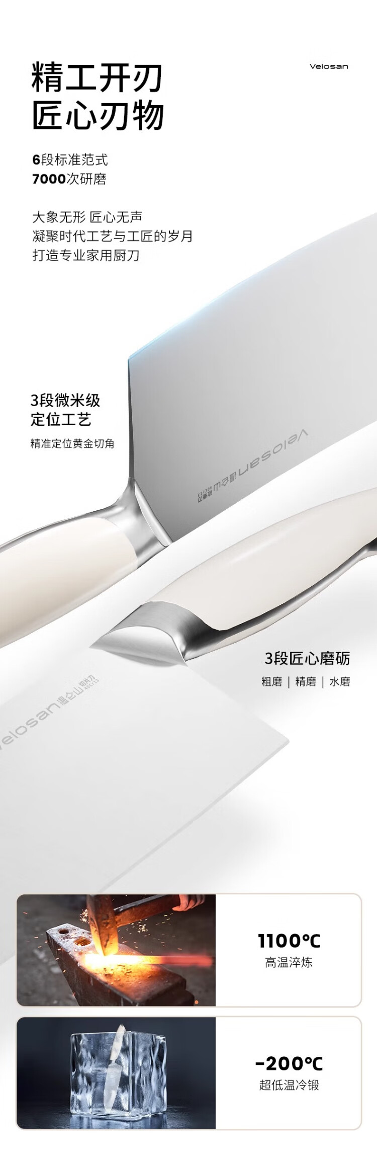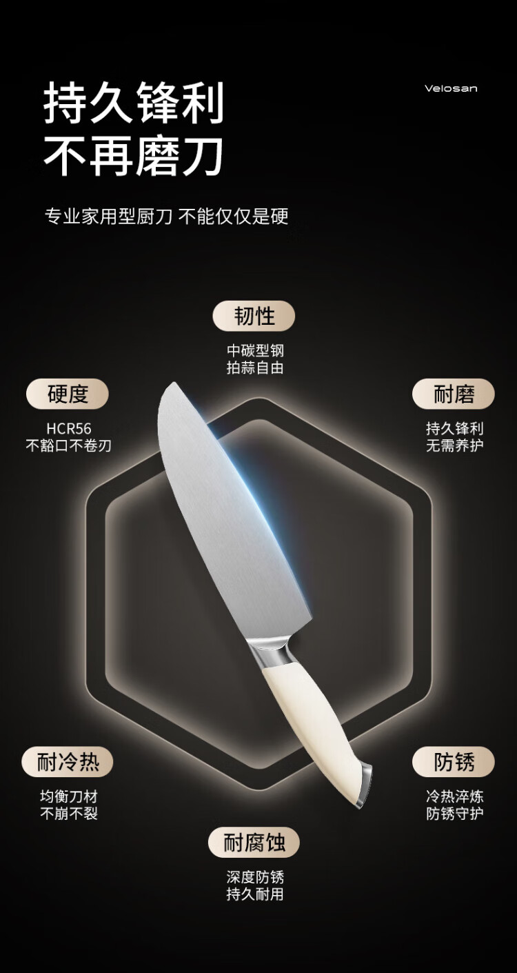 温仑山厨房不锈钢菜刀切片刀水果刀砍骨刀瓷光奶油鹅卵石刀具套装六件套