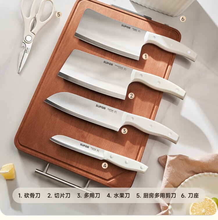 苏泊尔刀具套装六件套菜刀切片刀砍骨刀剪刀切菜厨房 TK24002E