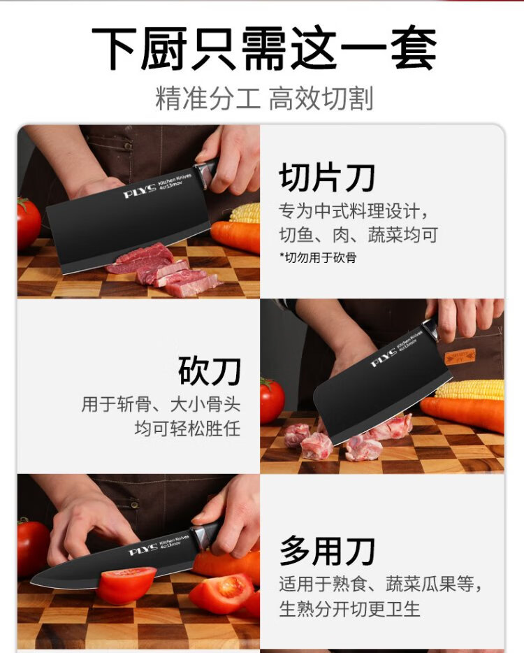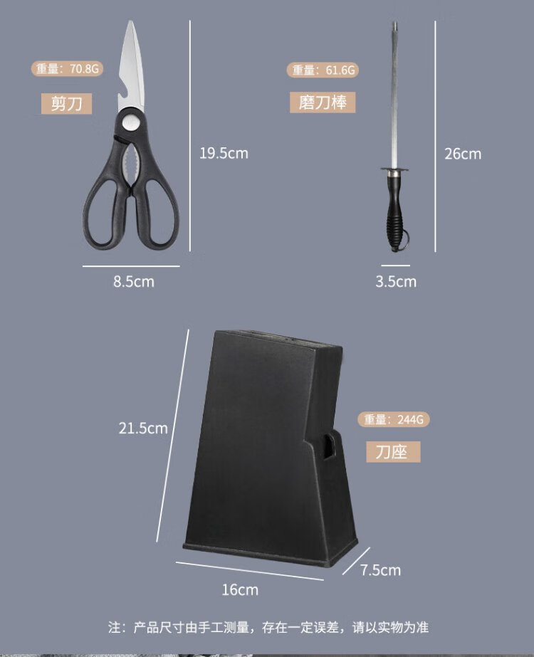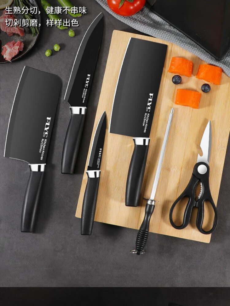 派莱斯刀具套装防锈7件套家用菜刀砍骨刀厨师刀剪刀水果刀厨房刀具厨具全套组合
