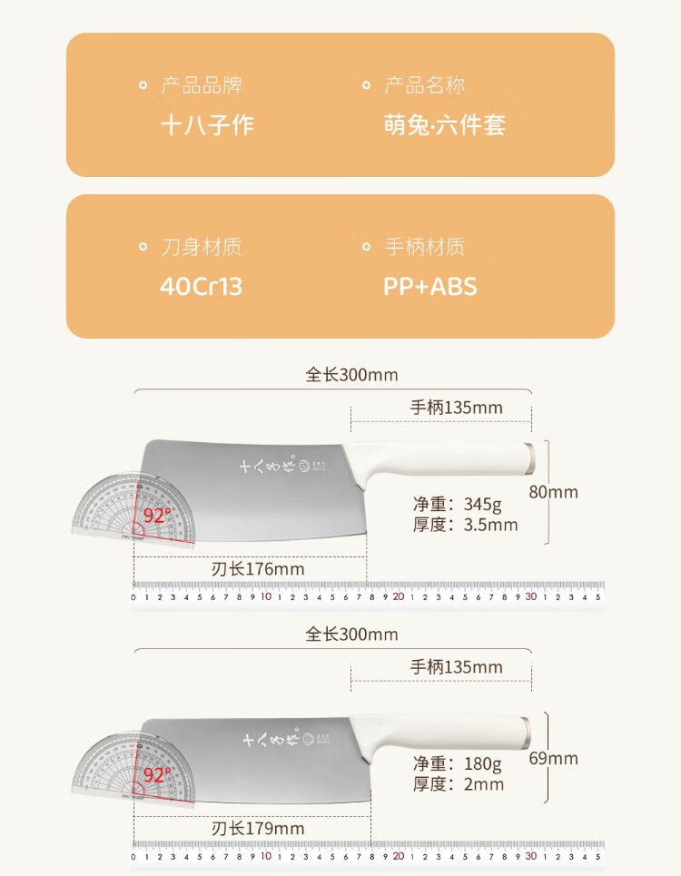 Shibazizuo Küchenmesser Messerset Bionic Series Cute Rabbit Siebenteiliges Messerset SL2473