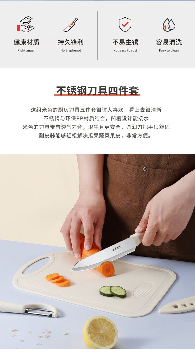 Ensemble de couteaux Palice Couteau de cuisine domestique Planche à découper Ensemble de trois pièces Couteau à fruits de cuisine Couteau à trancher Couteau d'office Ensemble complet d'outils complémentaires pour aliments pour bébés