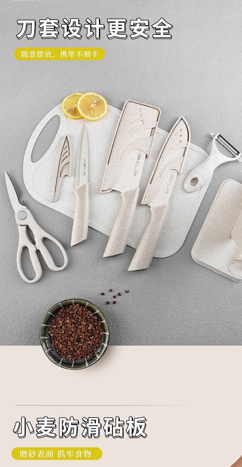 Little Teana complément alimentaire pour bébé couteau de cuisine ensemble d'ustensiles de cuisine planche à découper de cuisine domestique ensemble complet spatule de rangement ustensiles de cuisine couteau de cuisine blé + planche arrondie beige ensemble de deux pièces