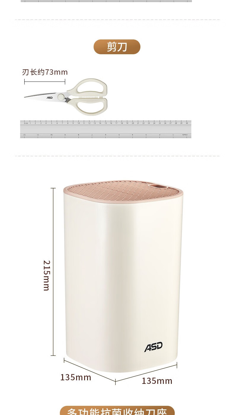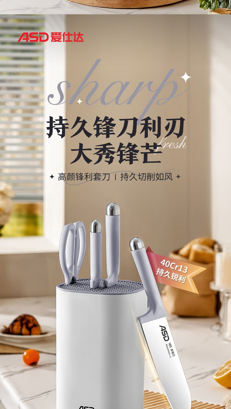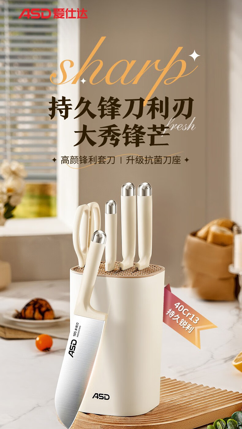 ASD Messerset aus Edelstahl für Küche und Haushalt, hochwertiges Schneidemesser, Mehrzweck-Küchenmesser, Schere, Obstmesser, Aufbewahrung, Messerhalter, gebrochenes Weiß, inklusive kostenlosem Messerhalter, 5-teiliges Set