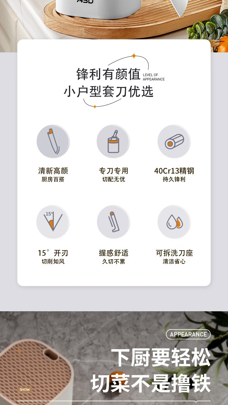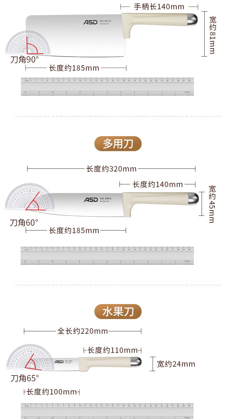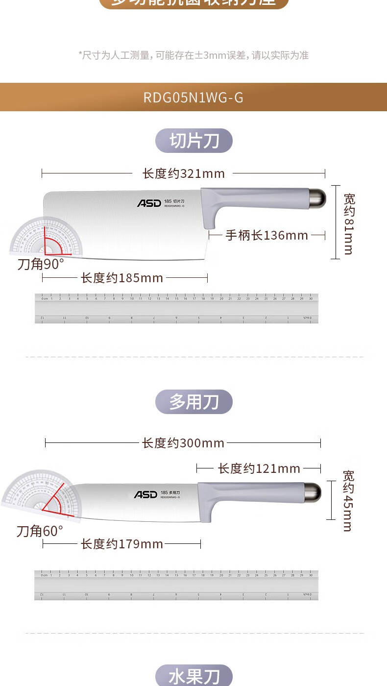 ASD Messerset aus Edelstahl für Küche und Haushalt, hochwertiges Schneidemesser, Mehrzweck-Küchenmesser, Schere, Obstmesser, Aufbewahrung, Messerhalter, gebrochenes Weiß, inklusive kostenlosem Messerhalter, 5-teiliges Set