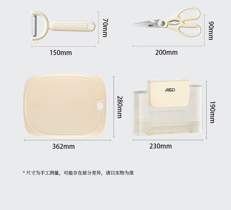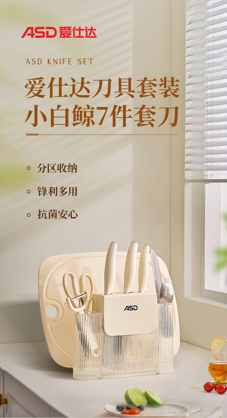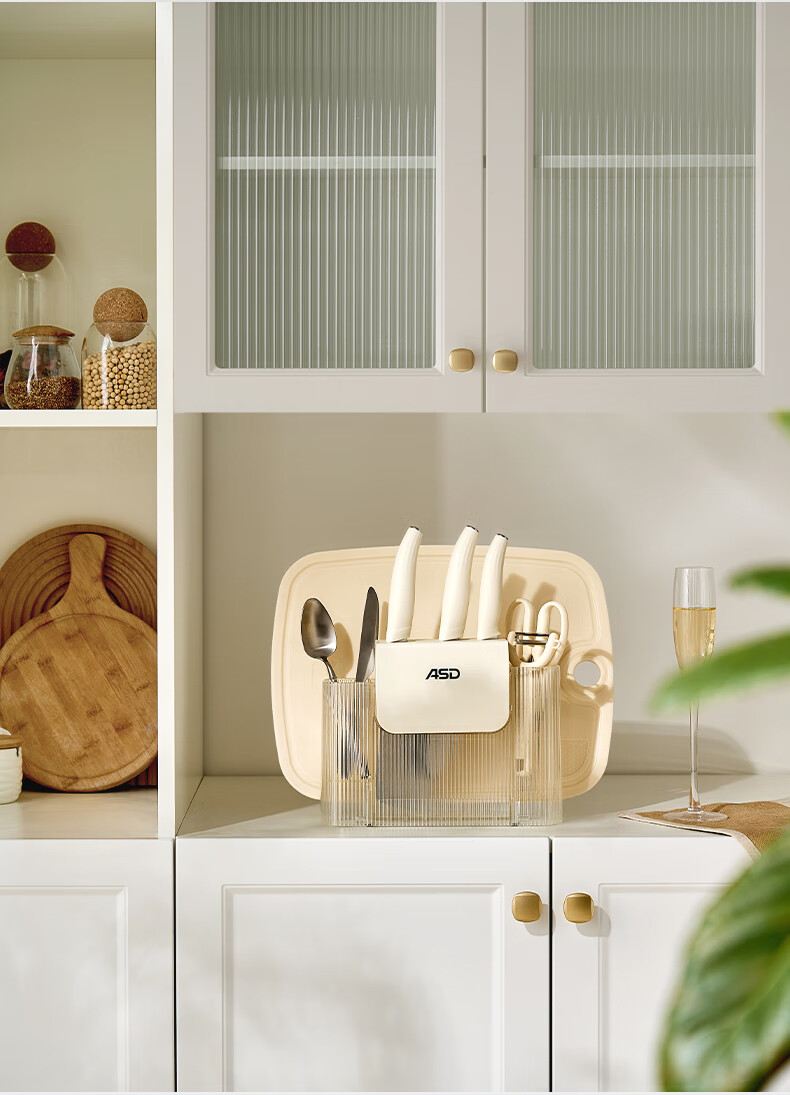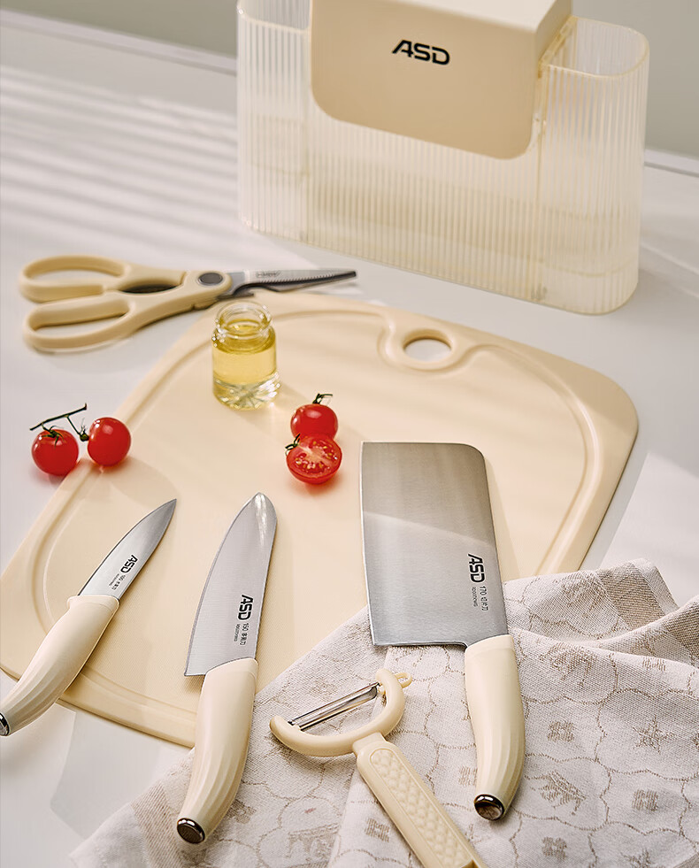 ASD Messerset Küche Haushalt Kompletter Satz Hackmesser Obstmesser Scherenhobel Edelstahl Scharfes Küchenmesser Schneidebrett Kombination Weißes Walmesser 7-teiliges Set