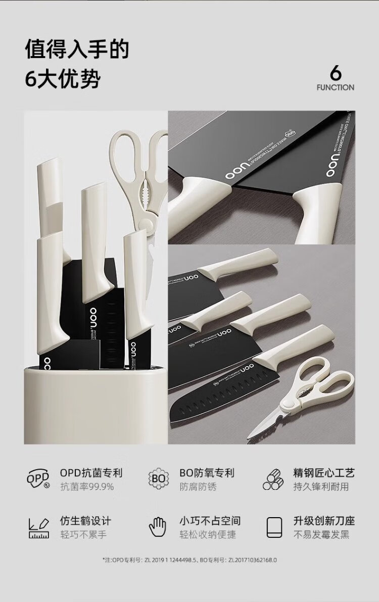 OOU! Messer-Set, Küchenmesser-Set, Küchenmesser, Haushalt, antibakteriell, rostfrei, Küchenutensilien, komplettes Set, Edelstahlmesser, komplettes Set, Crane Pro, antibakteriell, rostfrei, scharfes 6-teiliges Set