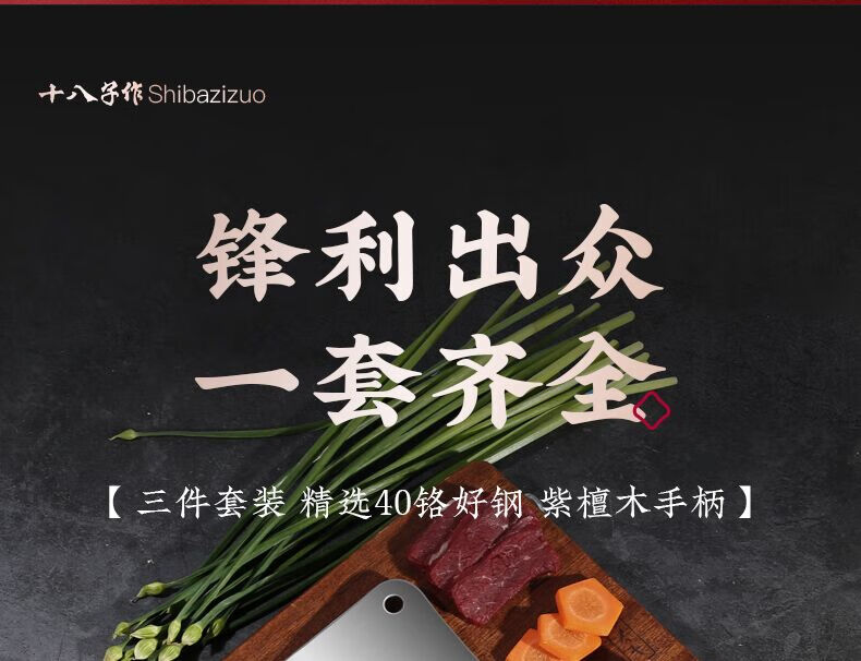 Shibazizuo couteau de cuisine ensemble de couteaux trois pièces combinaison couteau à découper les os de cuisine à domicile Yangjiang trancheuse à viande ustensiles de cuisine ensemble complet de porte-couteau couteau à trancher + couteau à découper les os + couteau polyvalent (porte-couteau en bois gratuit) ensemble de 3 pièces