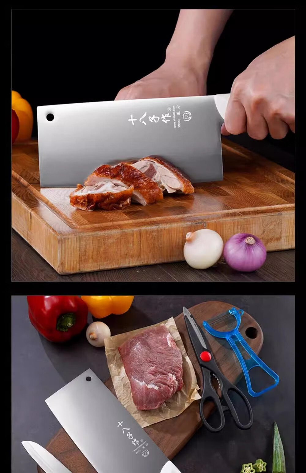 Shibazi Werkzeugset Küchenkombination Küchenmesser und Schneidebrett Zwei-in-Eins-Haushaltsküchenutensilien, Spatel, Löffel, Schere Komplettset Fengyue 4-teiliges Set + Messerhalter + Schneidebrett + Spatel und Löffel 8-teiliges Set