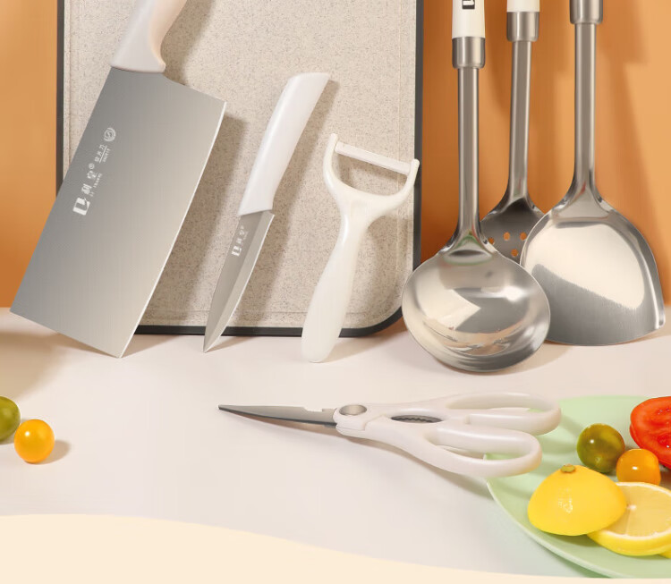 Lihuang Knife Set Household Kitchen Knife Three-piece Set Chopping Board Kitchen Utensils Complete Set Stainless Steel Spatula Set Fruit Knife Nan Bamboo Board + Kitchen Knife Three-piece Set + Spatula Spoon 7-piece Set