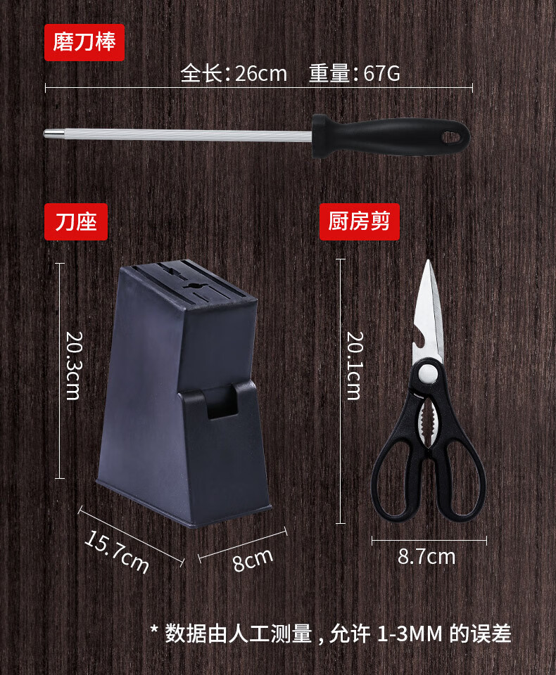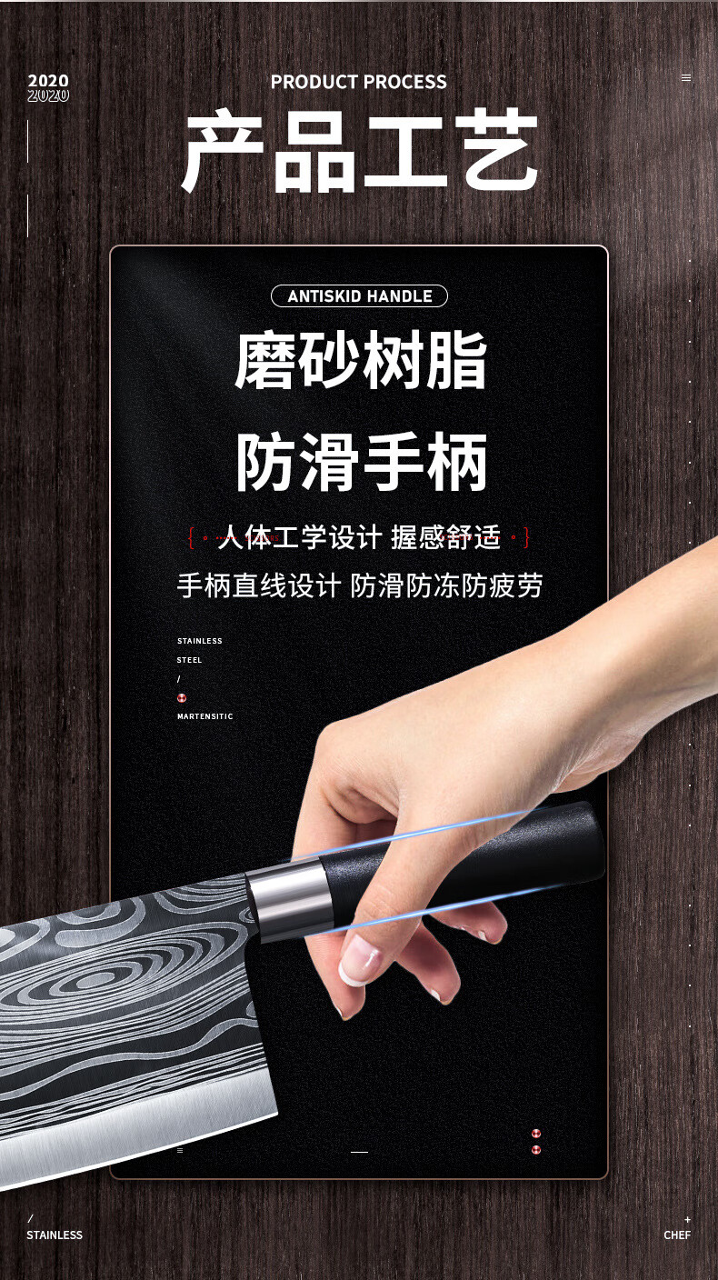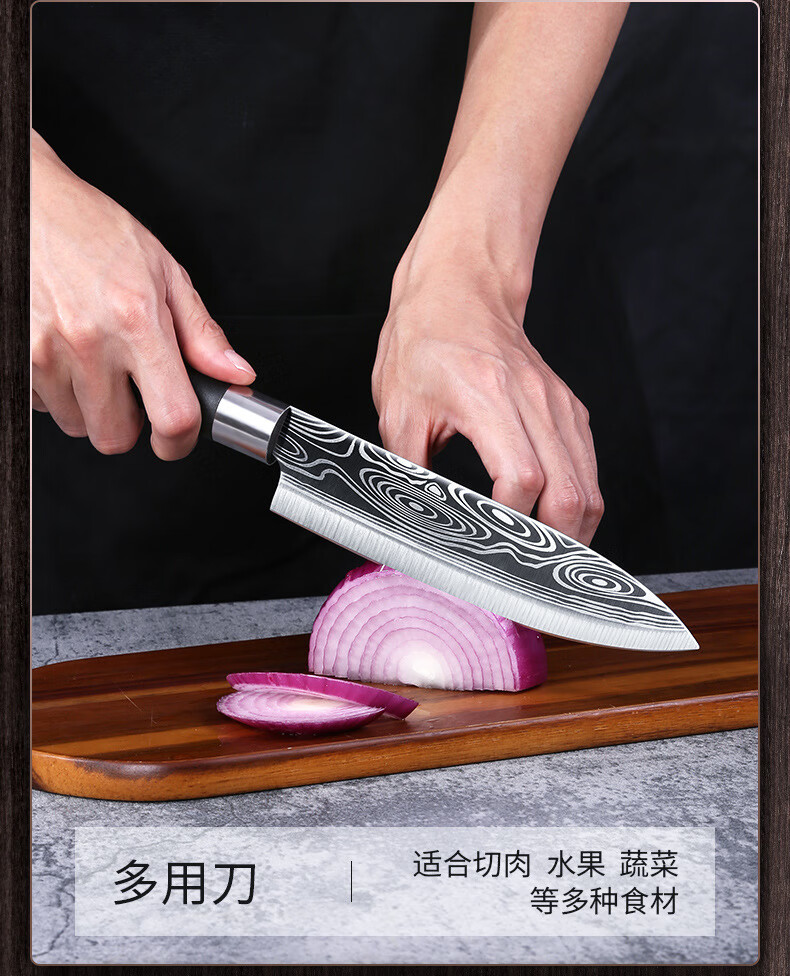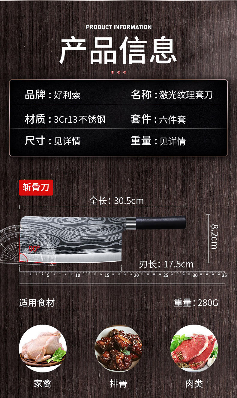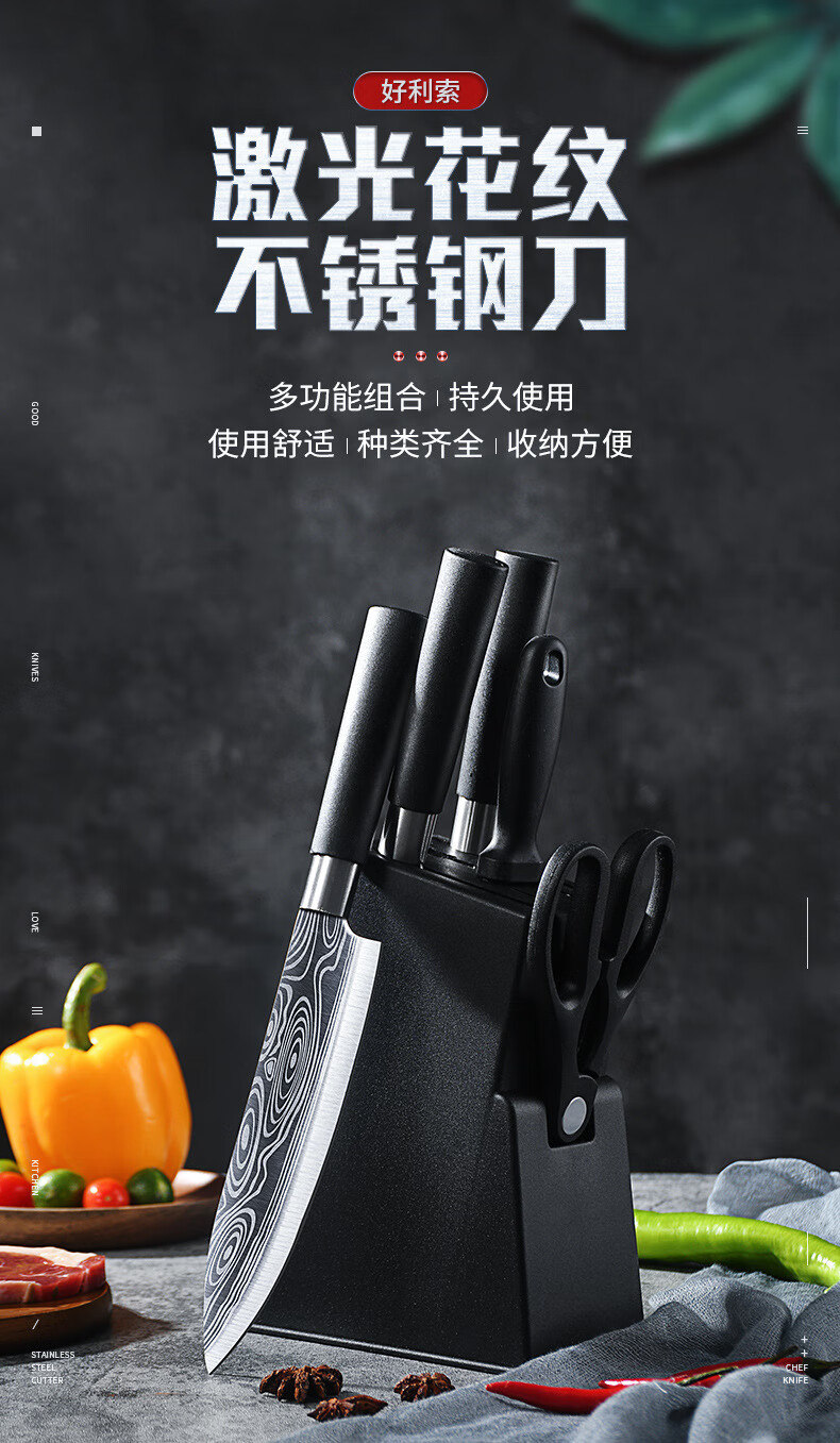 Fat Dong Lai Supermarket complete set of home kitchen knife combination stainless steel household vegetable cutting knife running Jianghu bone knife pattern bone chopping knife 6-piece set including knife holder