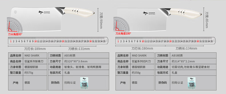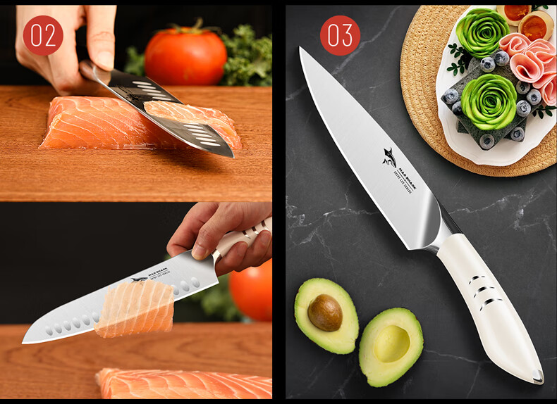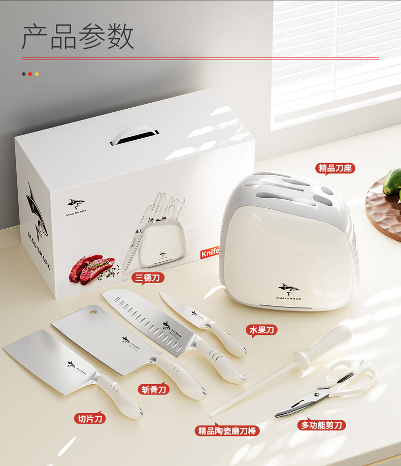 MAD SHARK Ensemble complet de couteaux de cuisine importés d'Allemagne, combinaison planche à découper et porte-couteau de cuisine, ensemble de tranchage de fruits et d'os, ensemble noir de sept pièces - porte-couteau amovible - importé d'Allemagne 60 ou plus x 180 mm x 134 mm