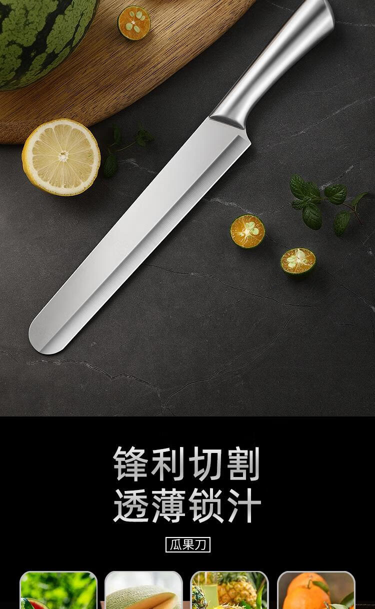 Ganzstahl integriertes, verlängertes Obstmesser aus Edelstahl für den Haushalt, große Melone und Obstmesser, professionelle, scharf geschnittene Wassermelone, verlängerte + kurze Version, kommt mit Messerset