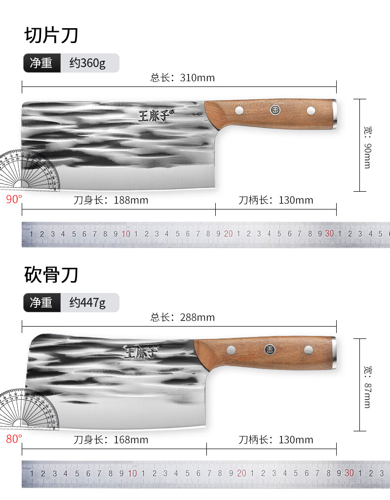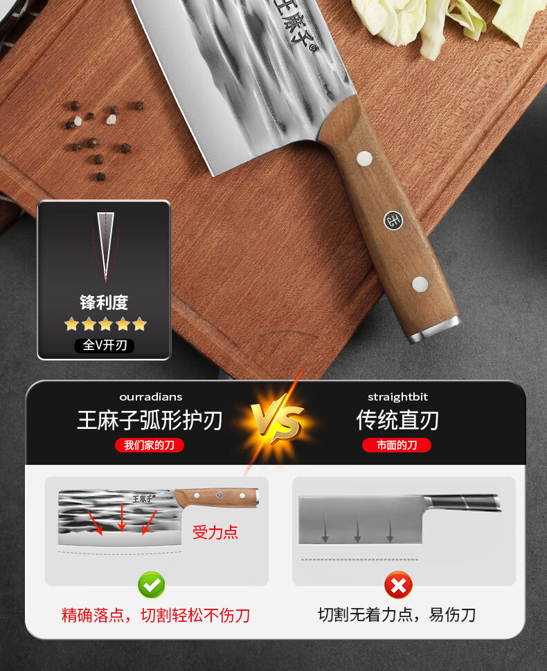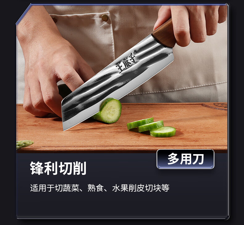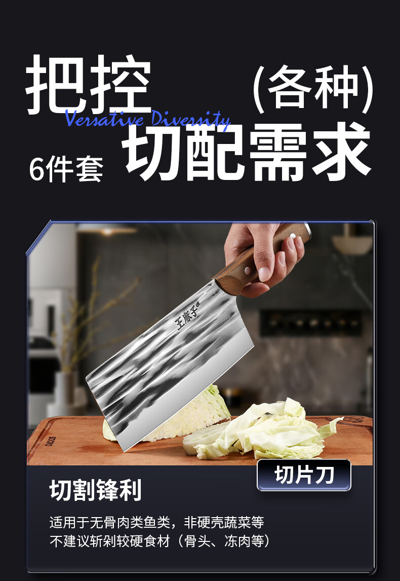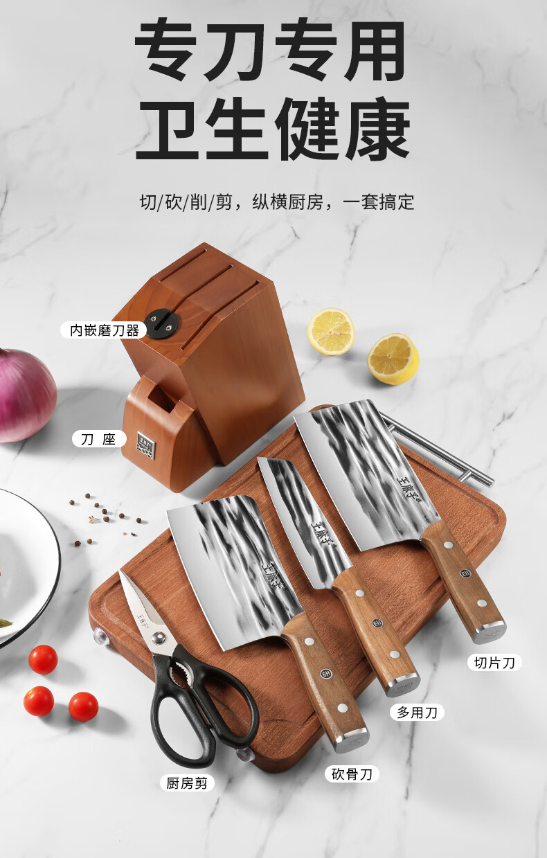 Wang Mazi kitchen knife full set hand-forged kitchen knife set three-piece kitchen knife set household bone chopping knife multi-purpose knife 25 years new forged kitchen knife set free sandalwood cutting board