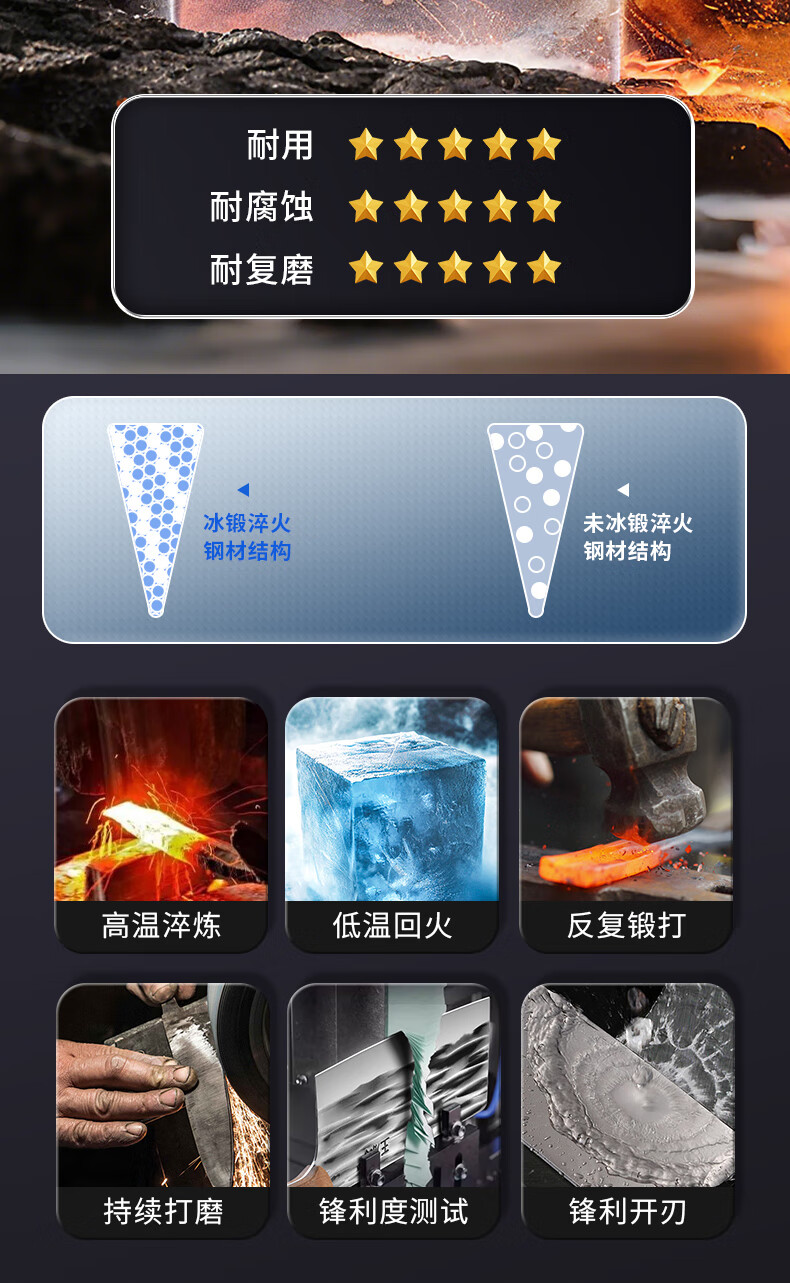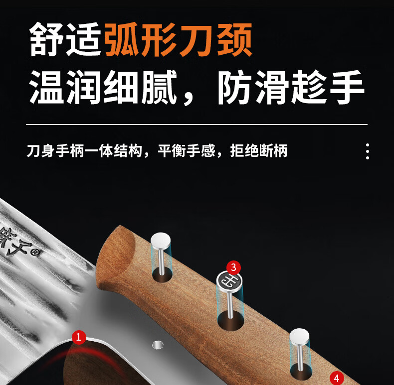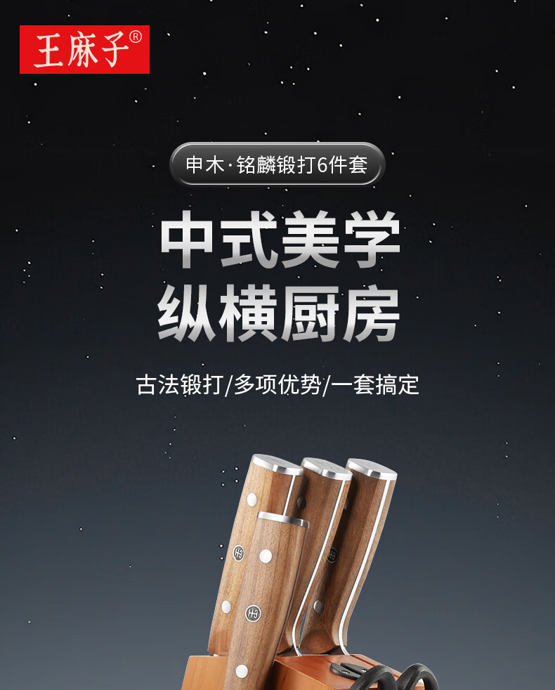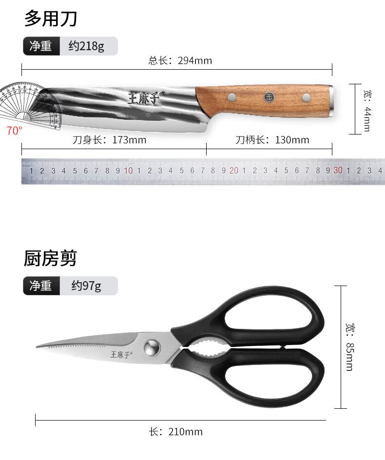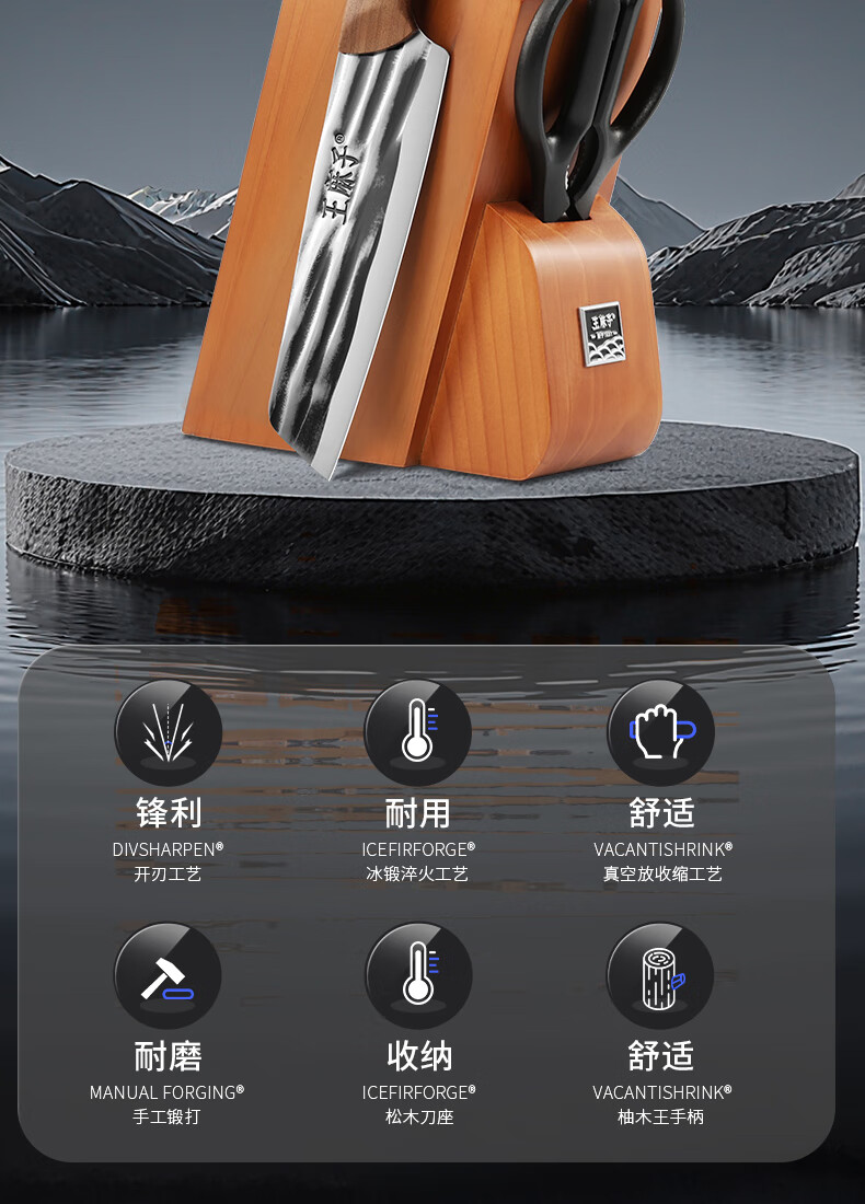 Wang Mazi kitchen knife full set hand-forged kitchen knife set three-piece kitchen knife set household bone chopping knife multi-purpose knife 25 years new forged kitchen knife set free sandalwood cutting board