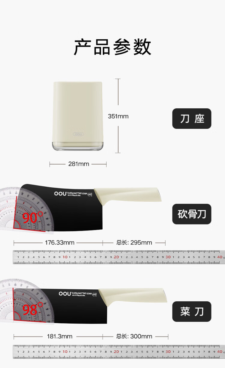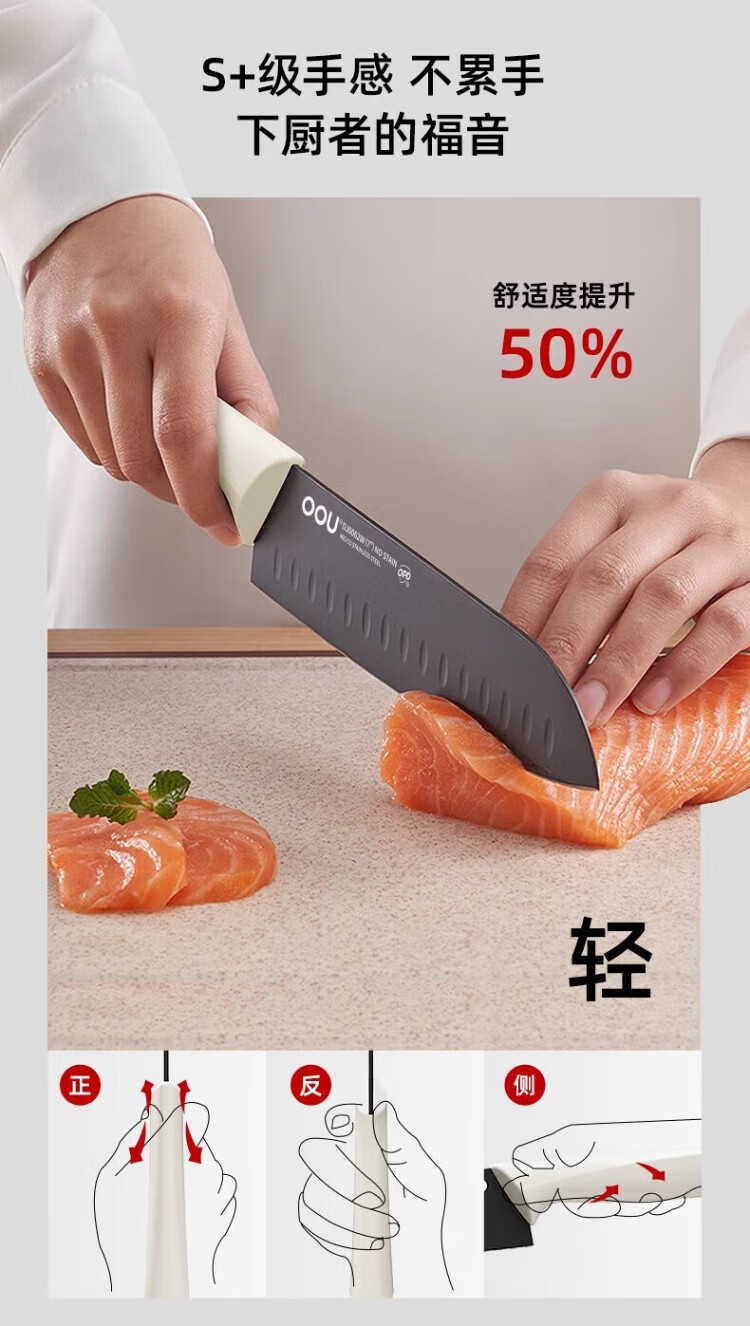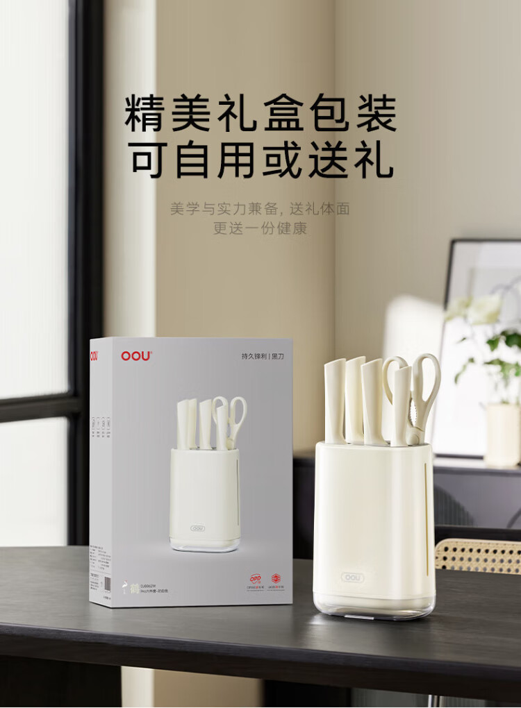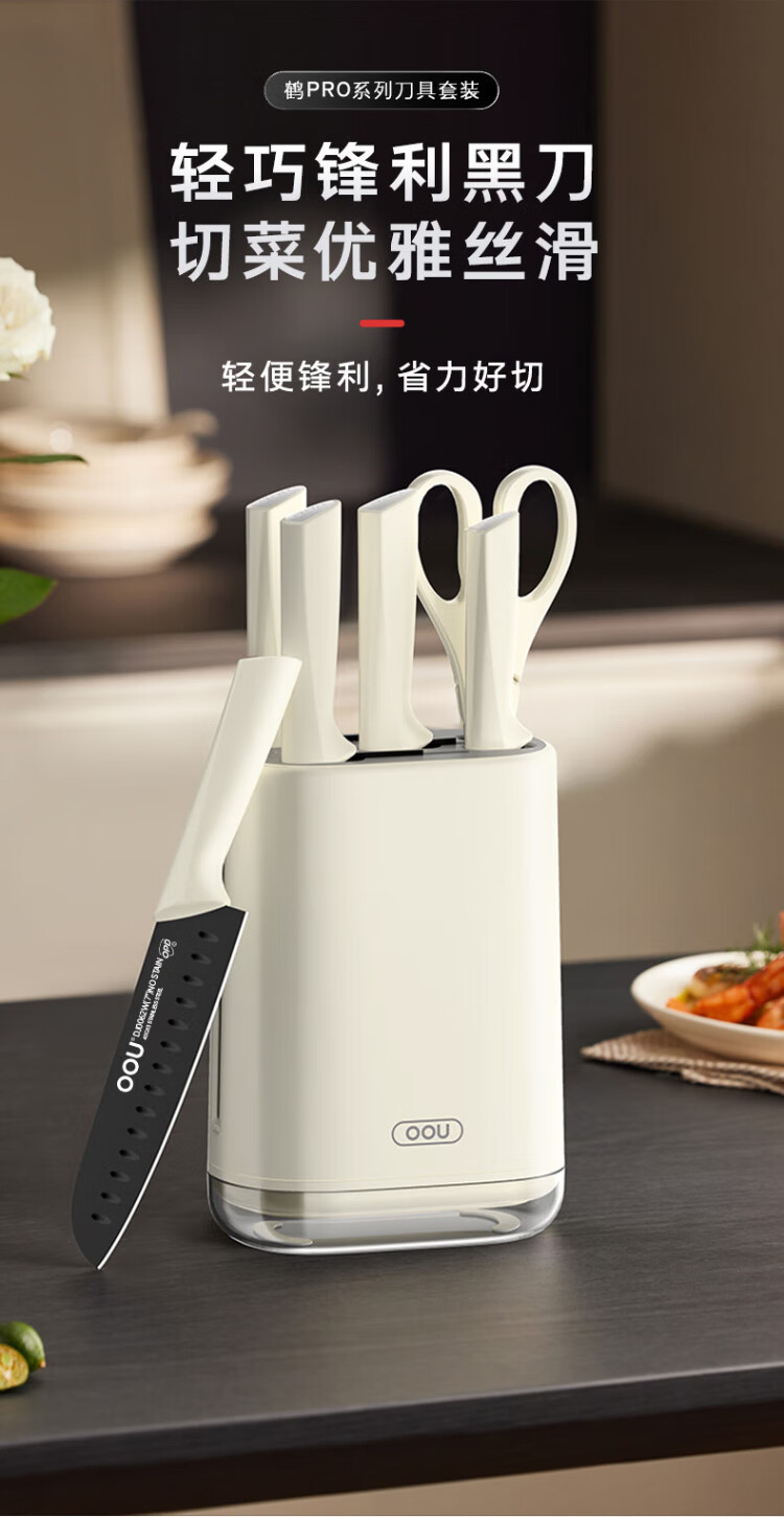 OOU厨房全套优质钢材家用厨具切菜刀剪刀水果刀具套装鹤pro套刀 鹤Pro[抗菌率99%+防生锈】6件套