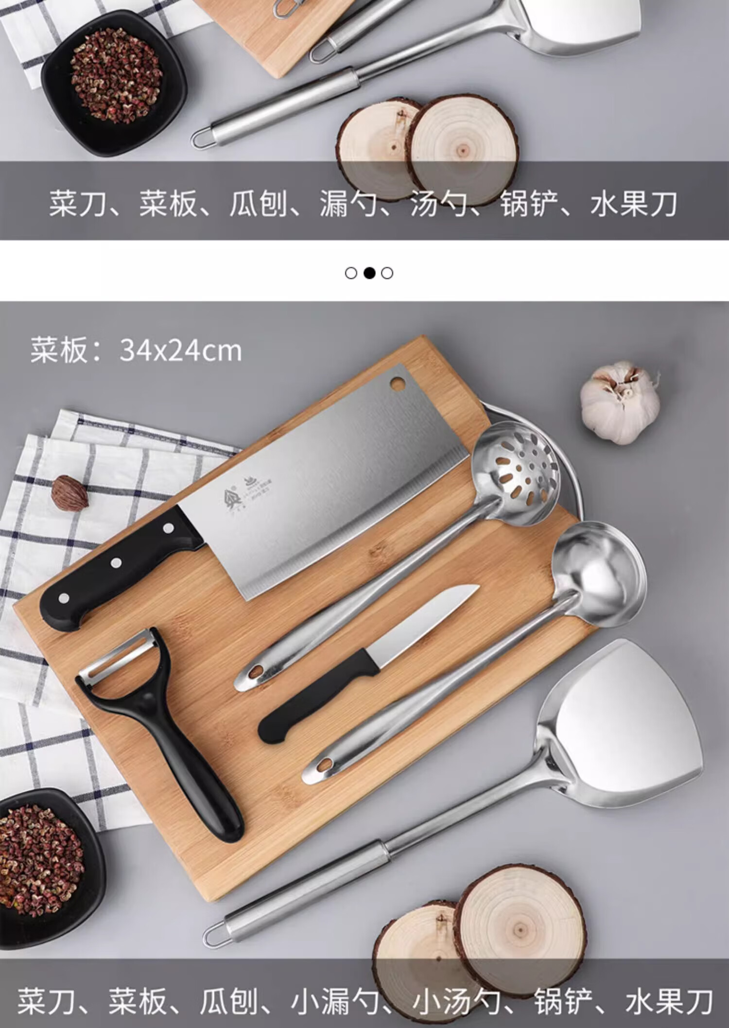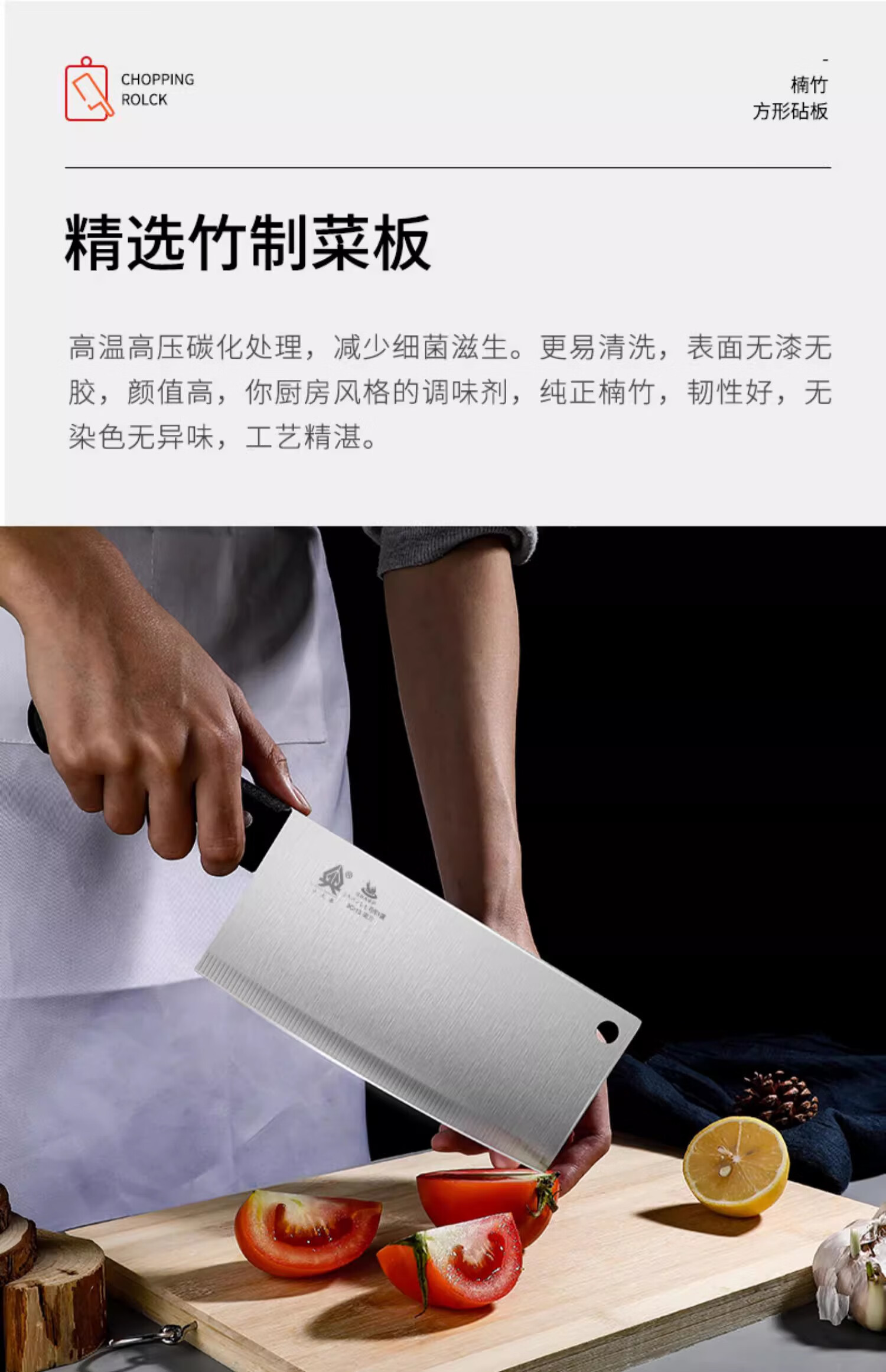 Chuangmu Workshop Kitchen Knife and Chopping Board Set Home Chopping Knife Chef's Special Knife Kitchen Quick Sharp Slicing Knife Kitchen Knife + Chopping Board + Fruit Knife + Melon Planer 4-piece Set