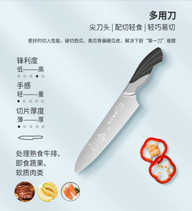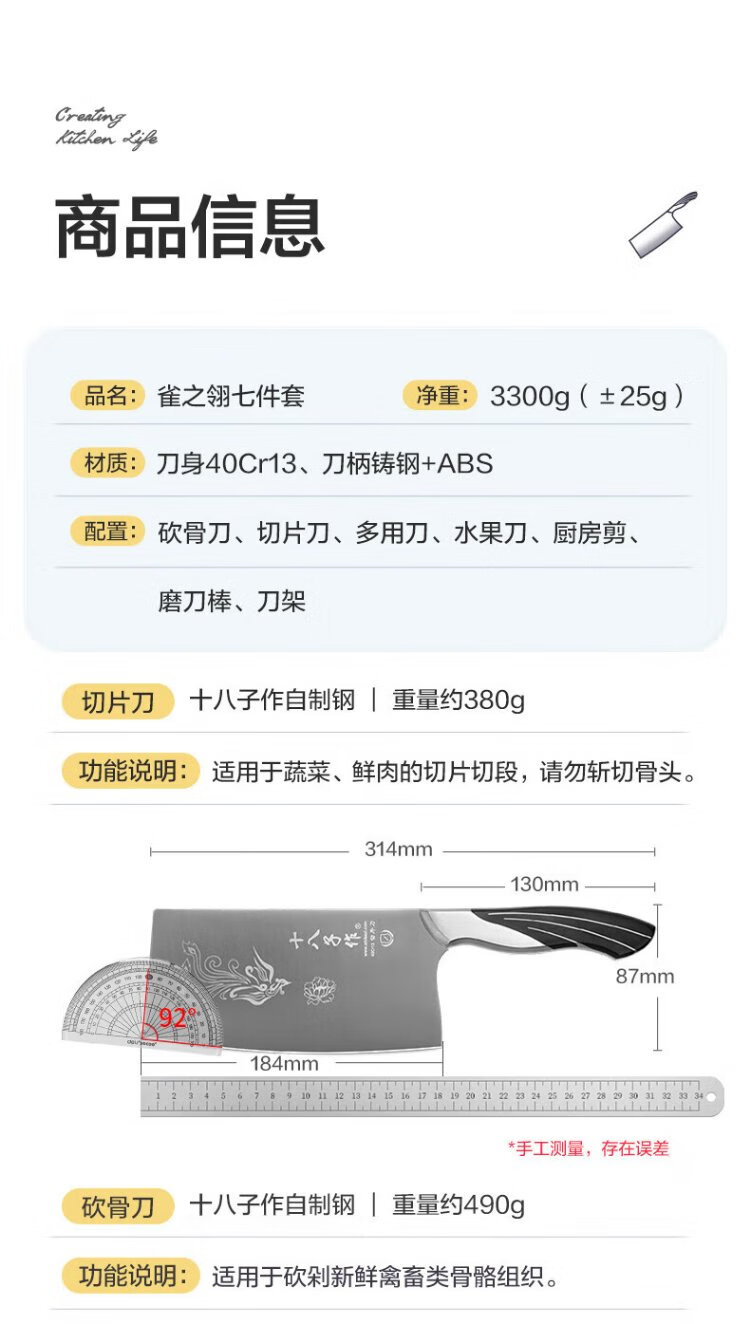 十八子作家用刀具套装菜刀组合雀之翎七件套刀AS1309【精美礼盒装】