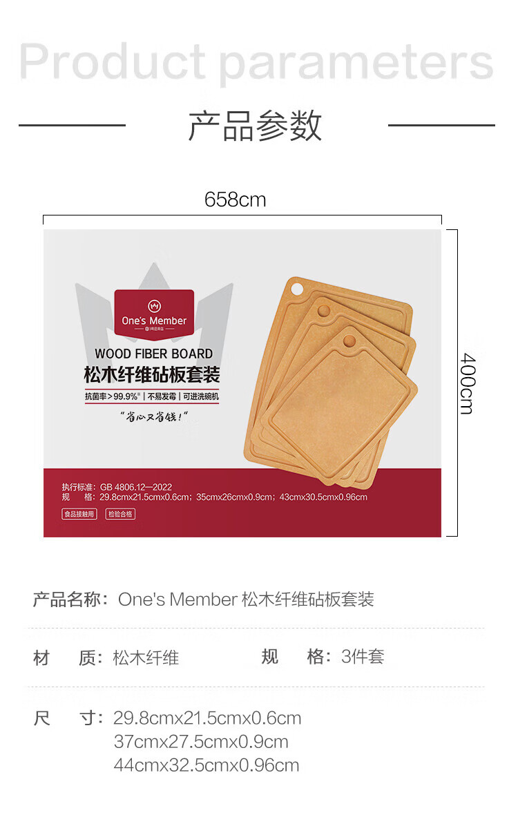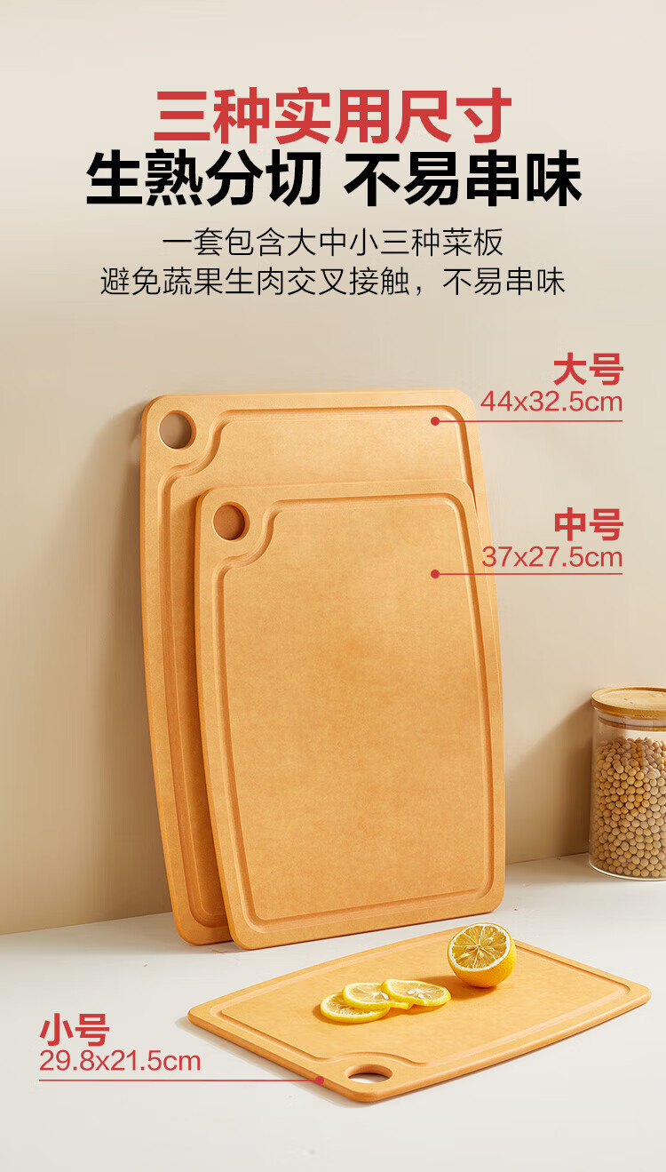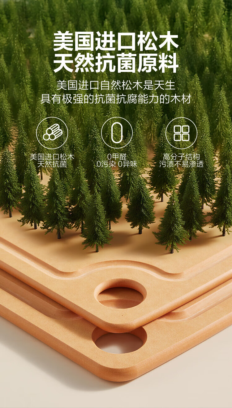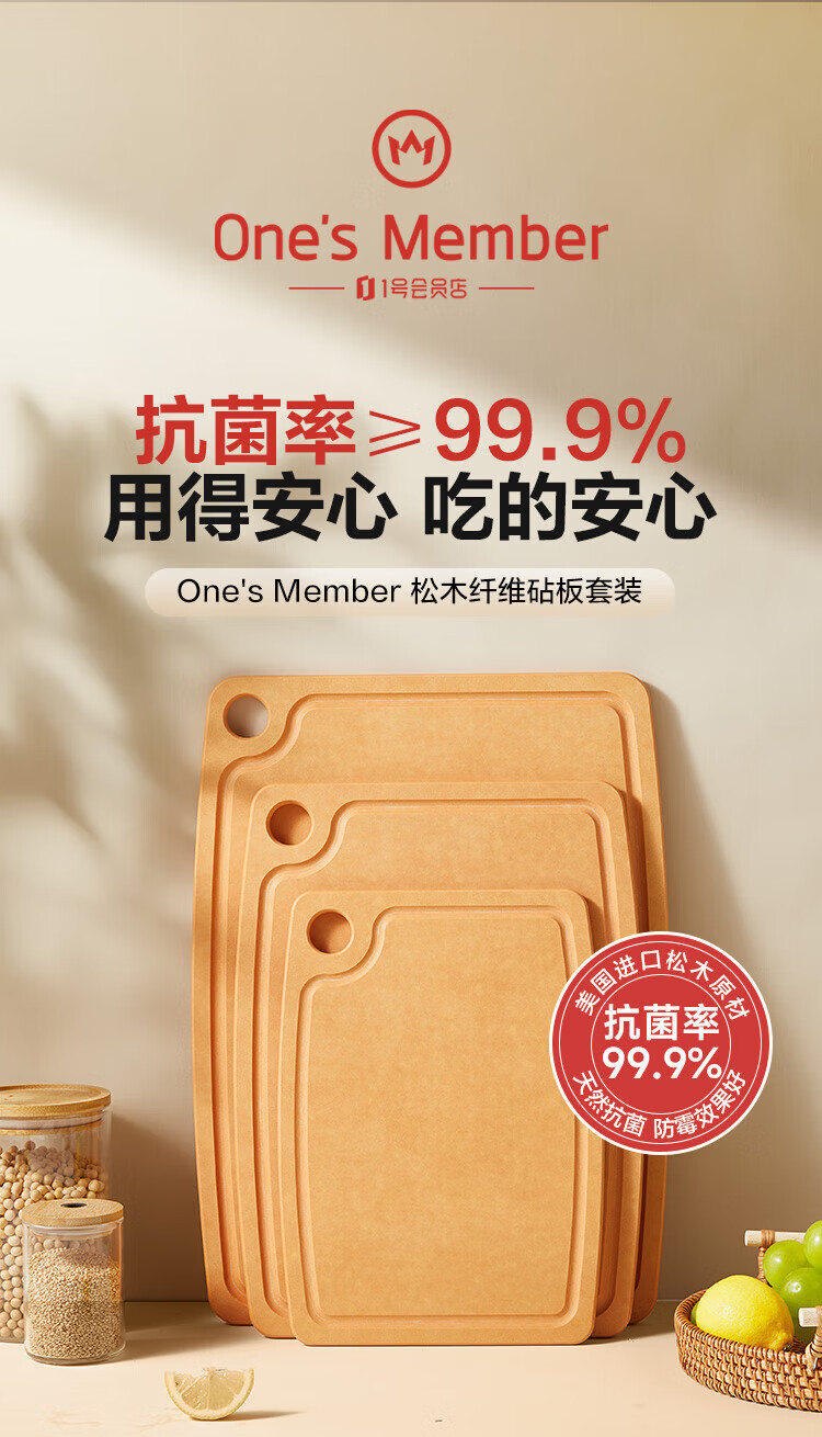 1号会员店 菜板 进口松木纤维案板家用切菜食品抗菌防霉砧板三件套