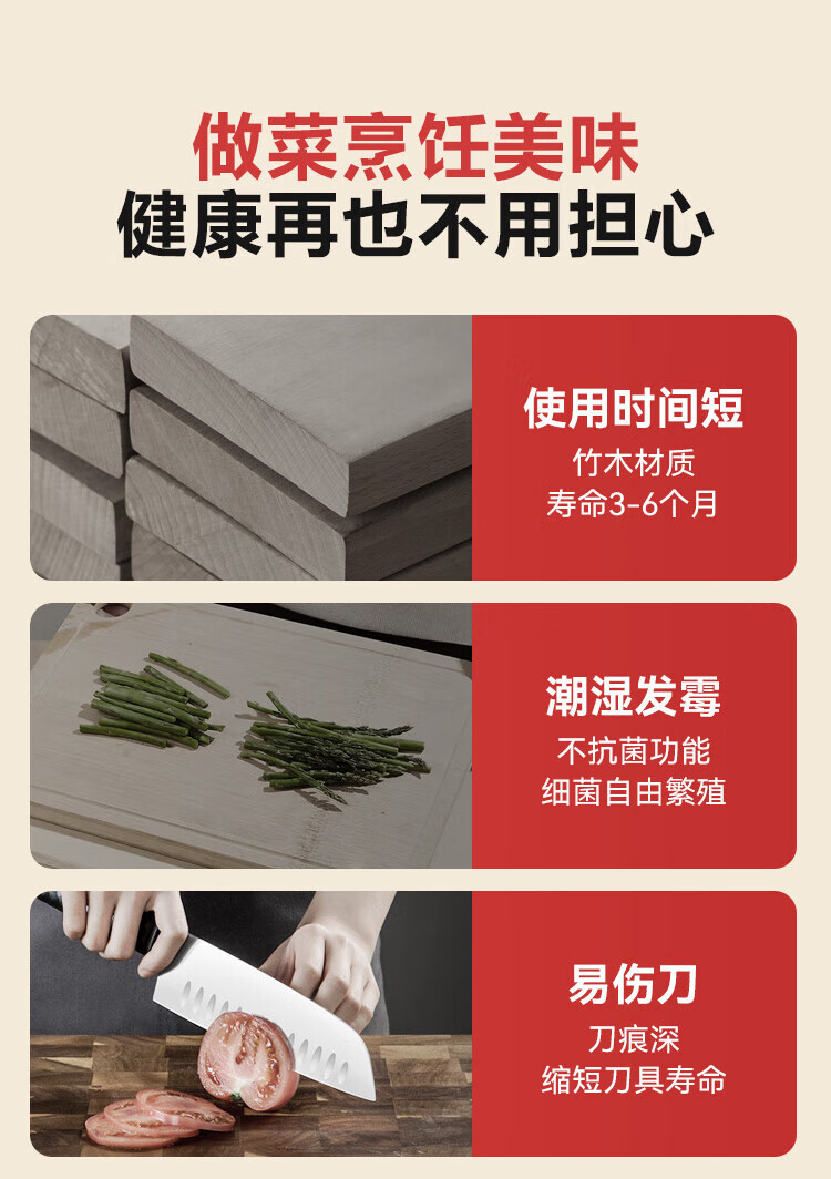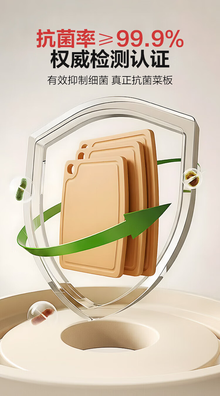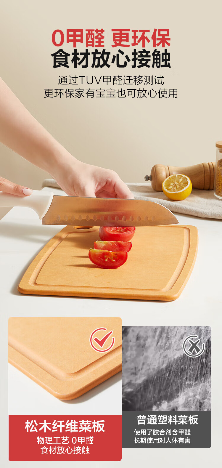 1号会员店 菜板 进口松木纤维案板家用切菜食品抗菌防霉砧板三件套
