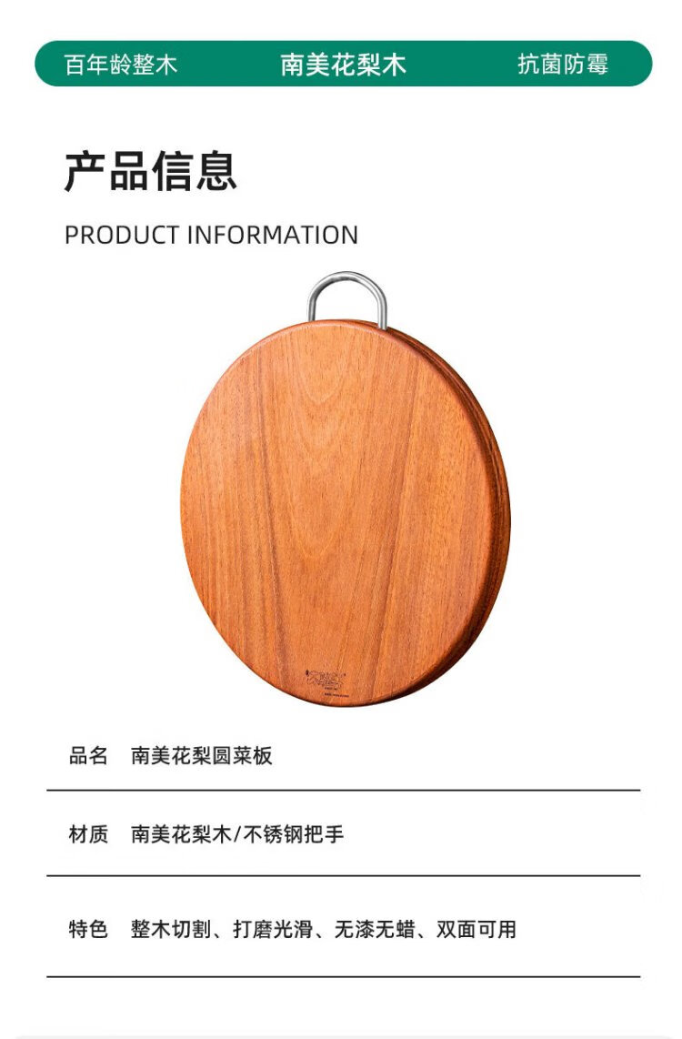 Planche à découper en bois de rose Muyaxuan, antibactérienne et résistante à la moisissure, planche à découper en bois massif domestique, planche à découper ronde, planche à découper, planche d'occupation de cuisine, jetée à légumes