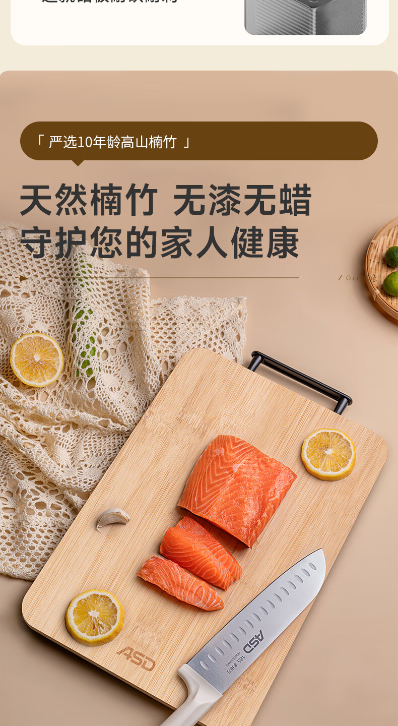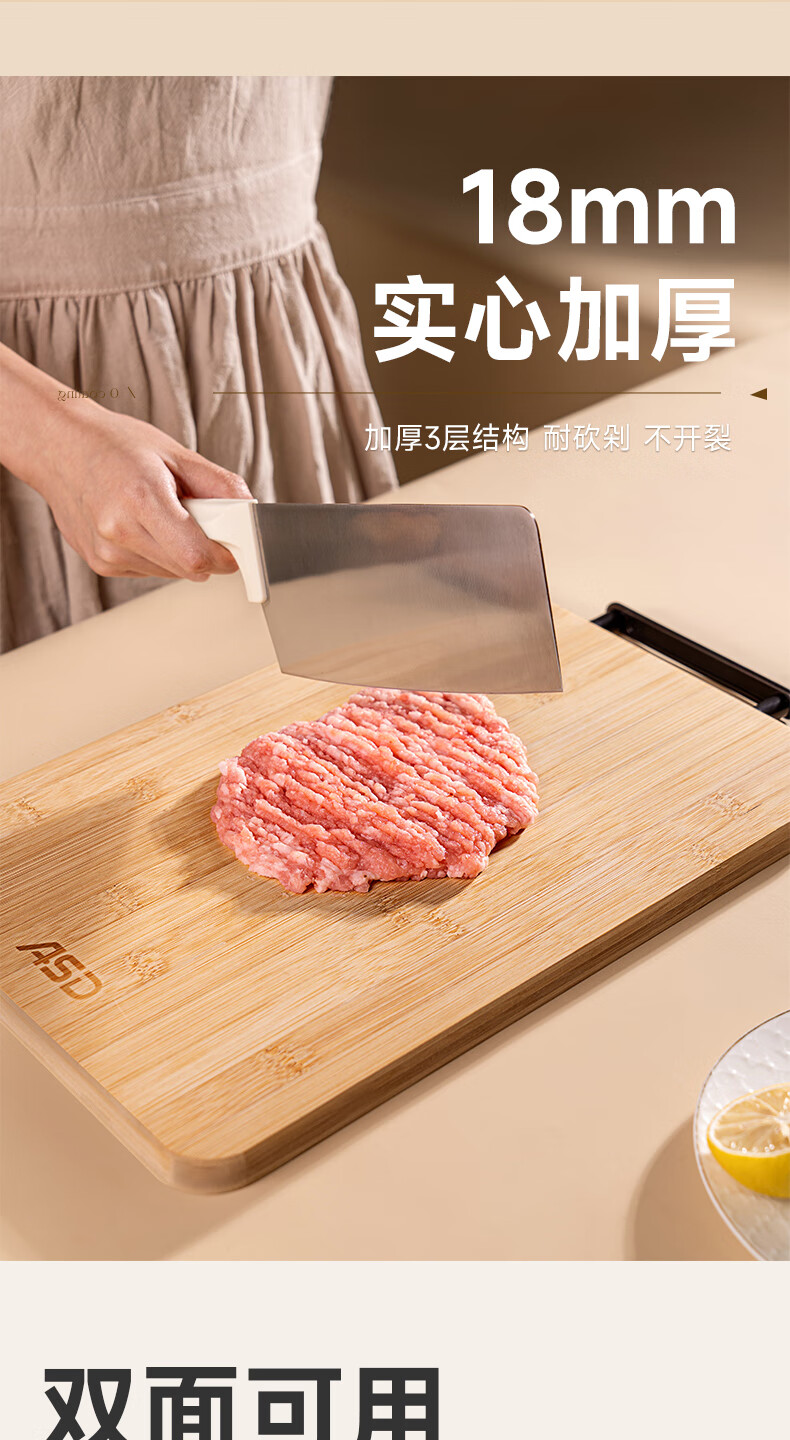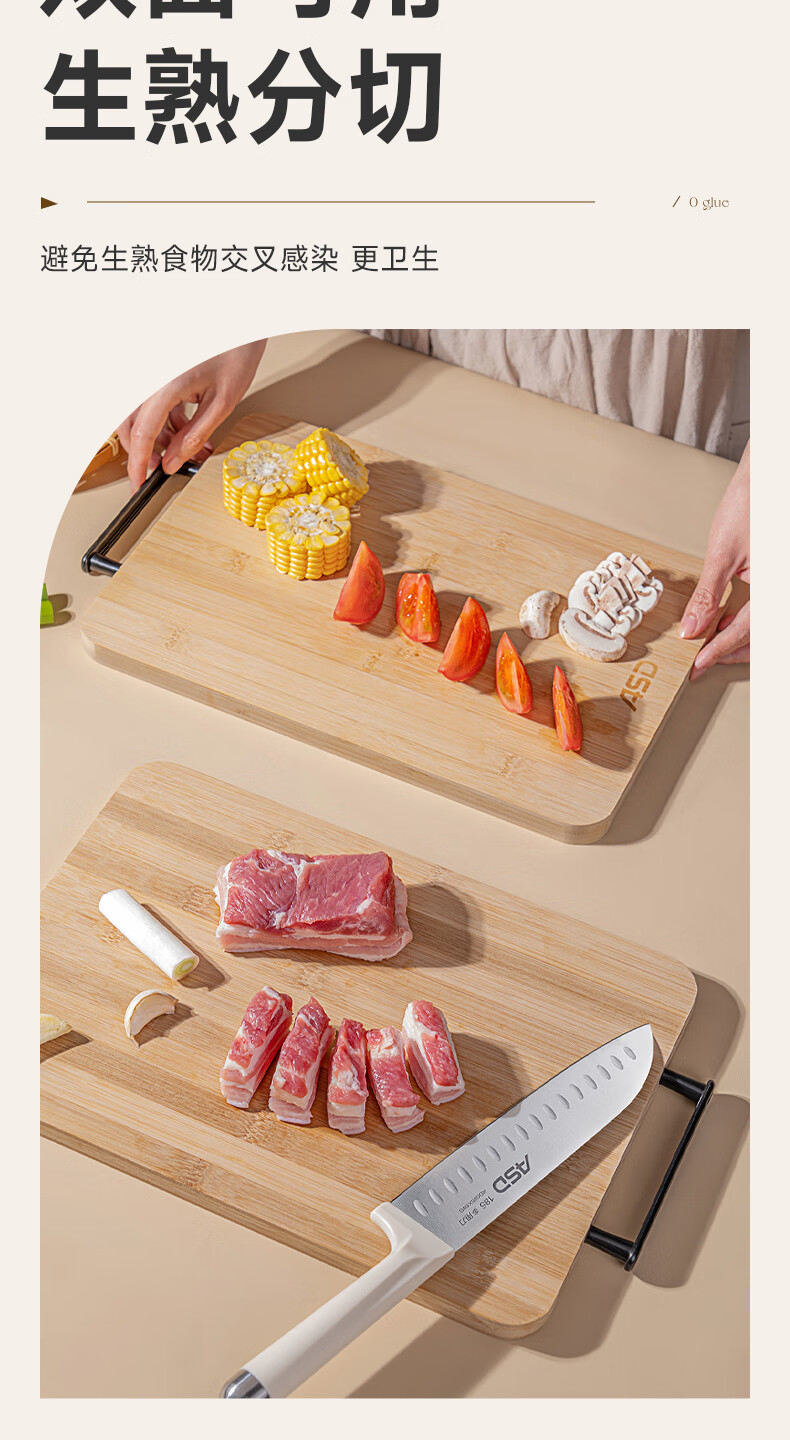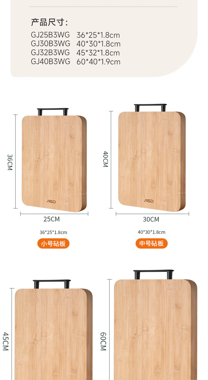 ASD (ASD) Planche à découper Cuisine à Domicile Double Face Bambou Naturel Planche à découper épaissie Solide Panneau de Planche à découper Petite Planche à découper en Bambou (36 * 25 * 1,8 cm)