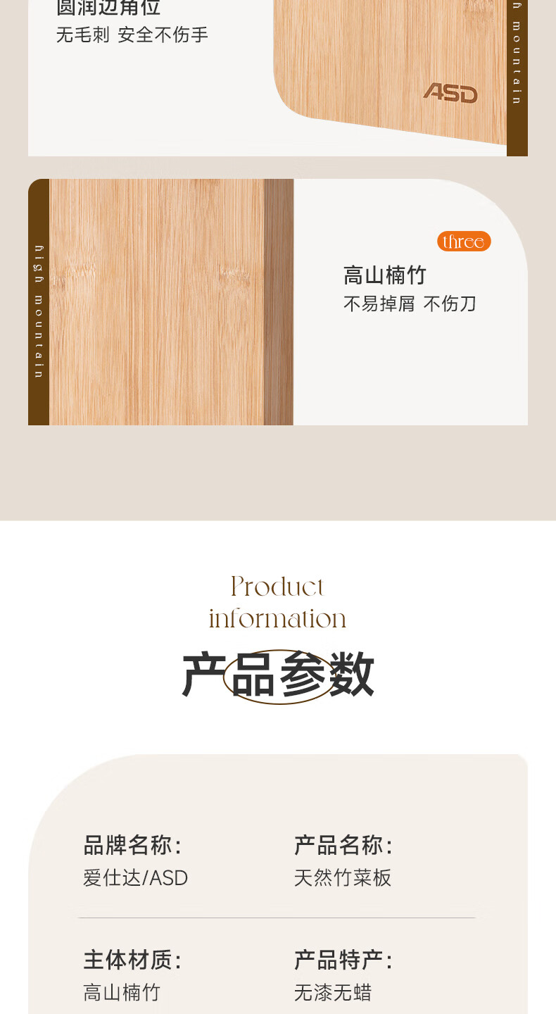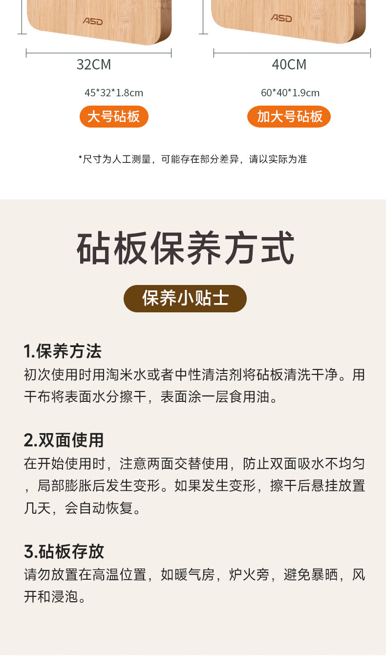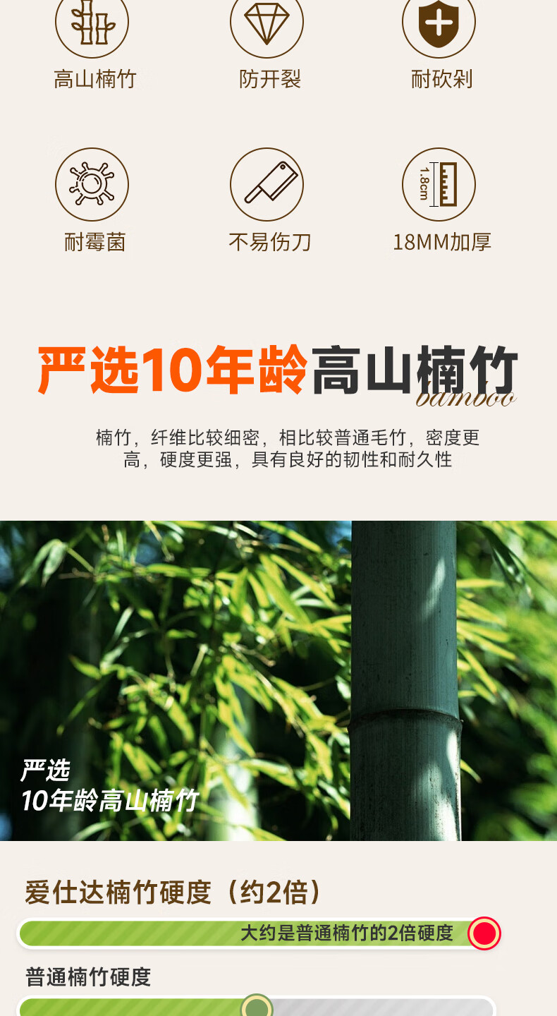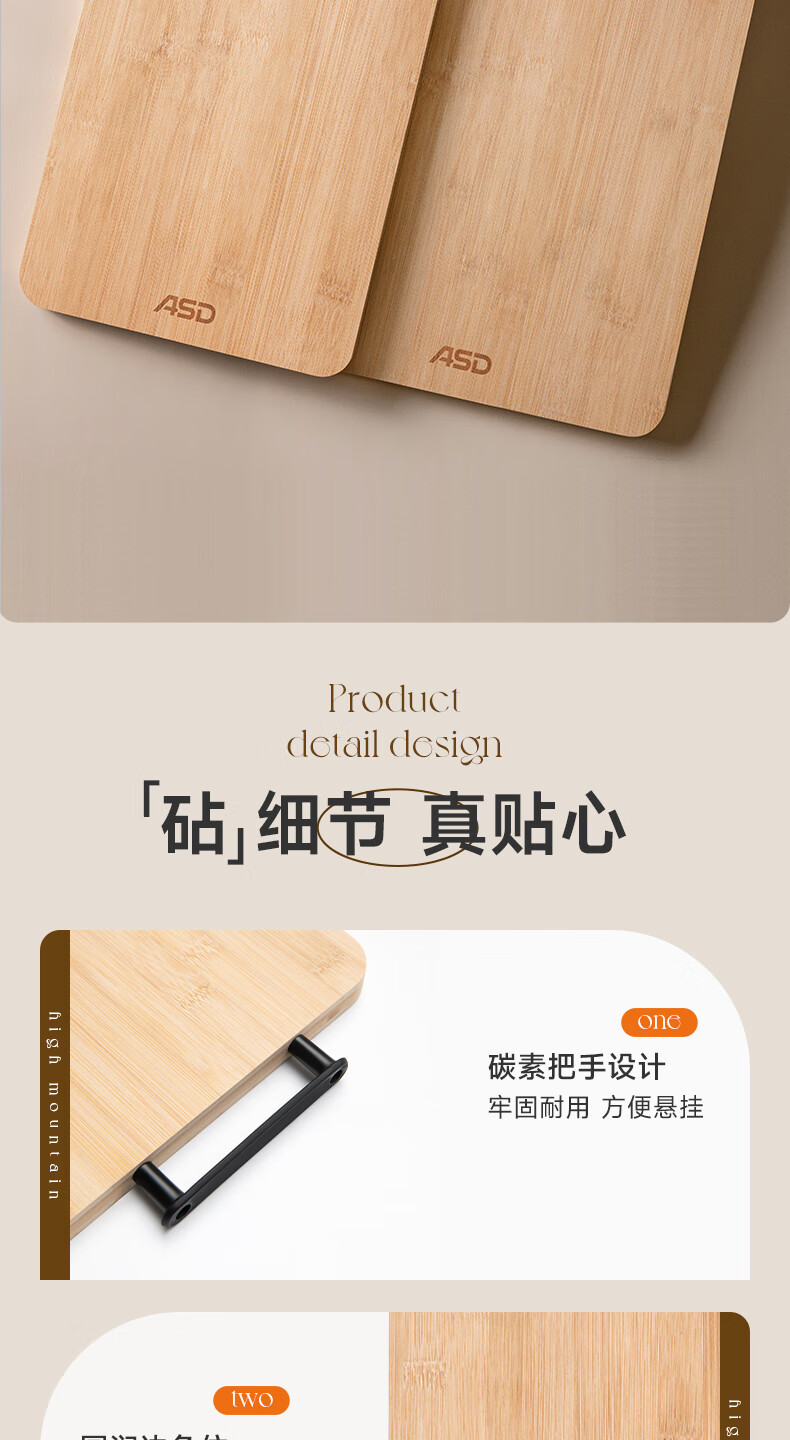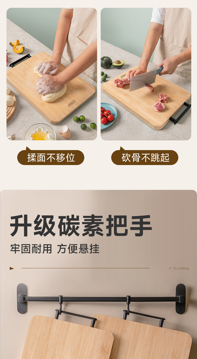 ASD (ASD) Planche à découper Cuisine à Domicile Double Face Bambou Naturel Planche à découper épaissie Solide Panneau de Planche à découper Petite Planche à découper en Bambou (36 * 25 * 1,8 cm)