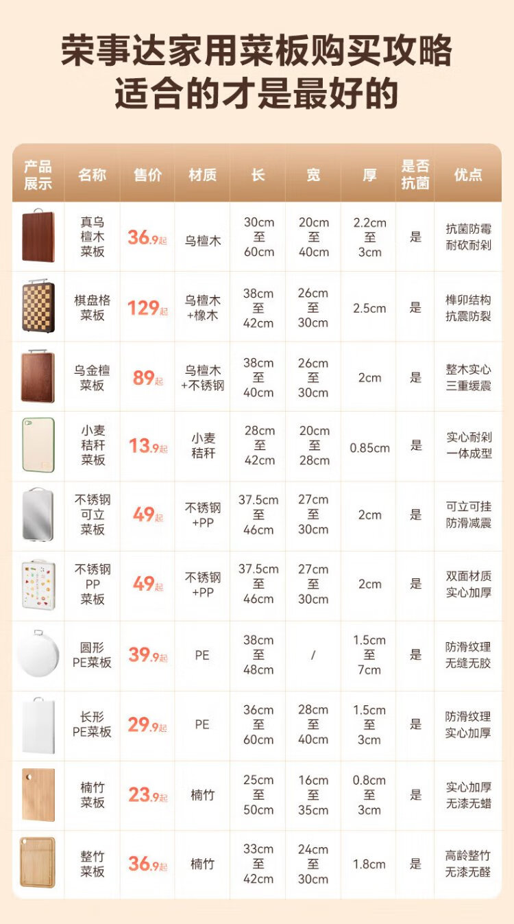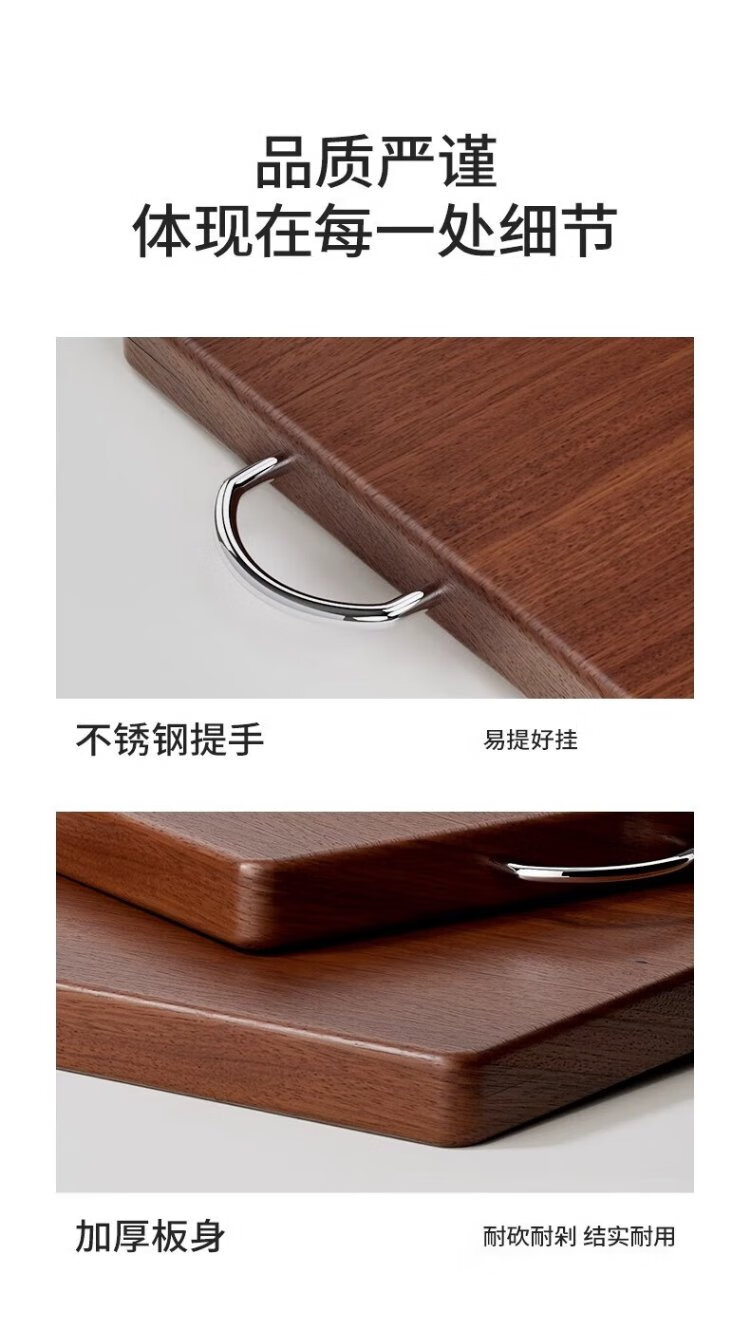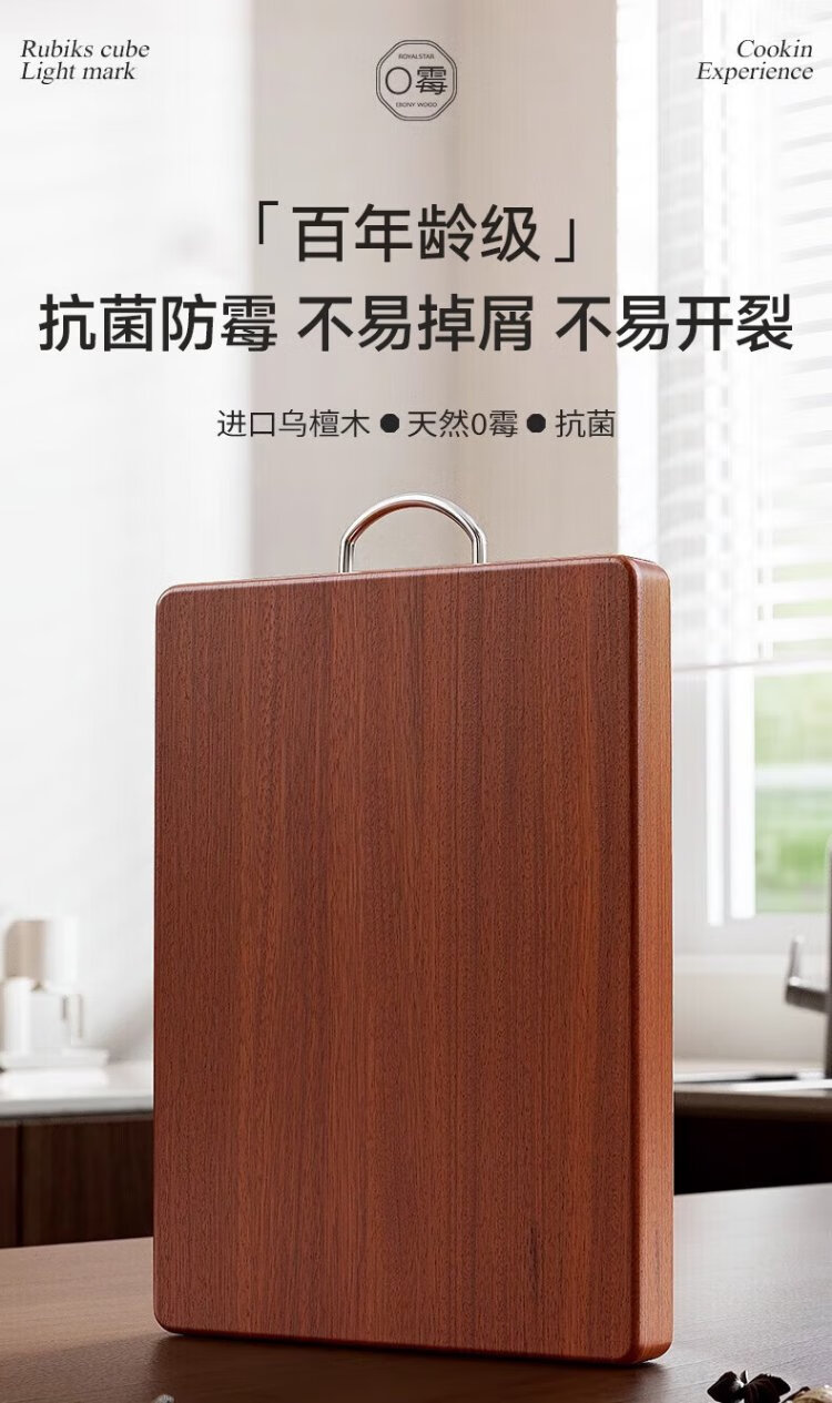 荣事达(Royalstar)乌檀木菜板抗菌防霉砧板实木双面案板家用切菜板厨房专用面板 【真材实料】40*28*2.2cm 长方形