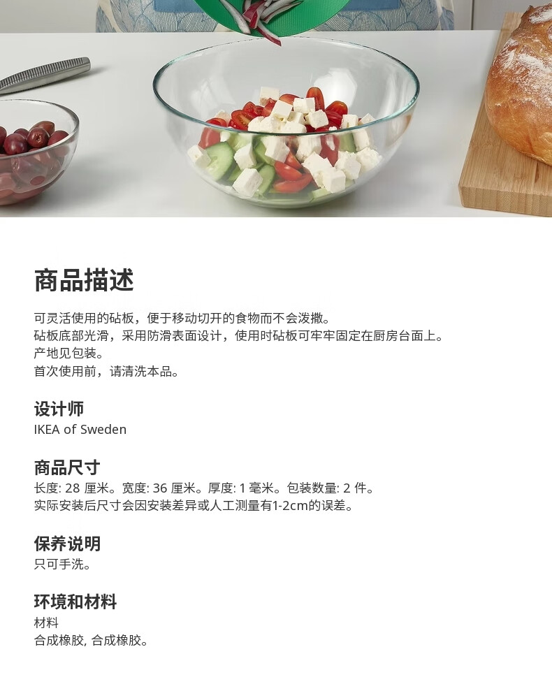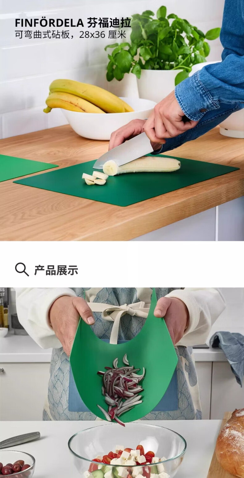 宜家(IKEA)FINFORDELA芬福迪拉可弯曲式砧板防滑安全使用现代简约 绿色/亮绿色28x36cm