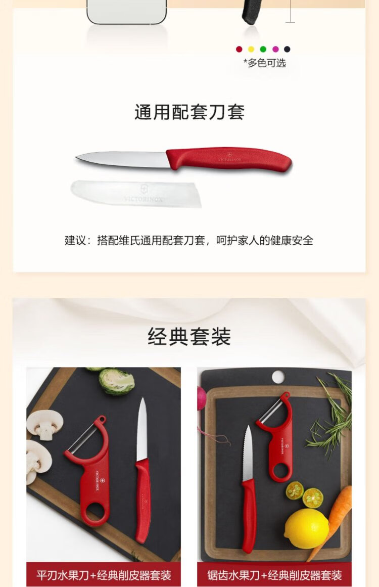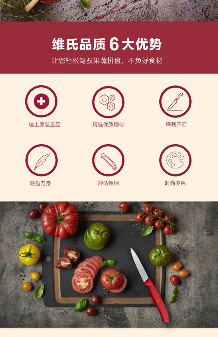 维氏瑞士军刀水果刀面包刀刀具多功能刀不锈钢平刃削皮刀红色6.7701