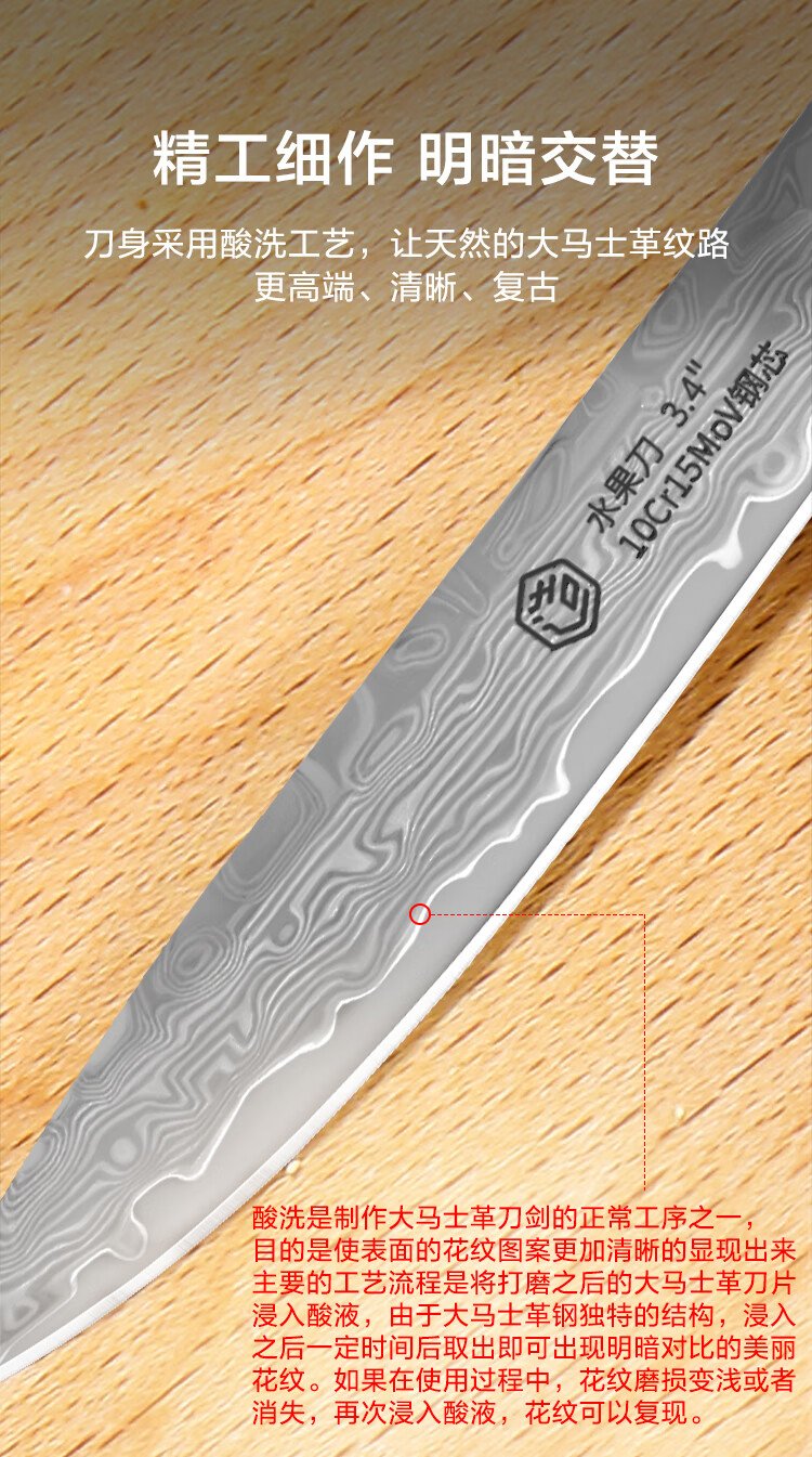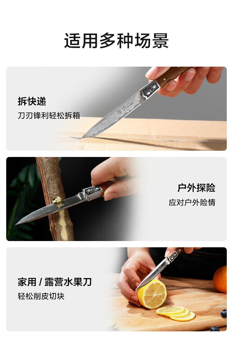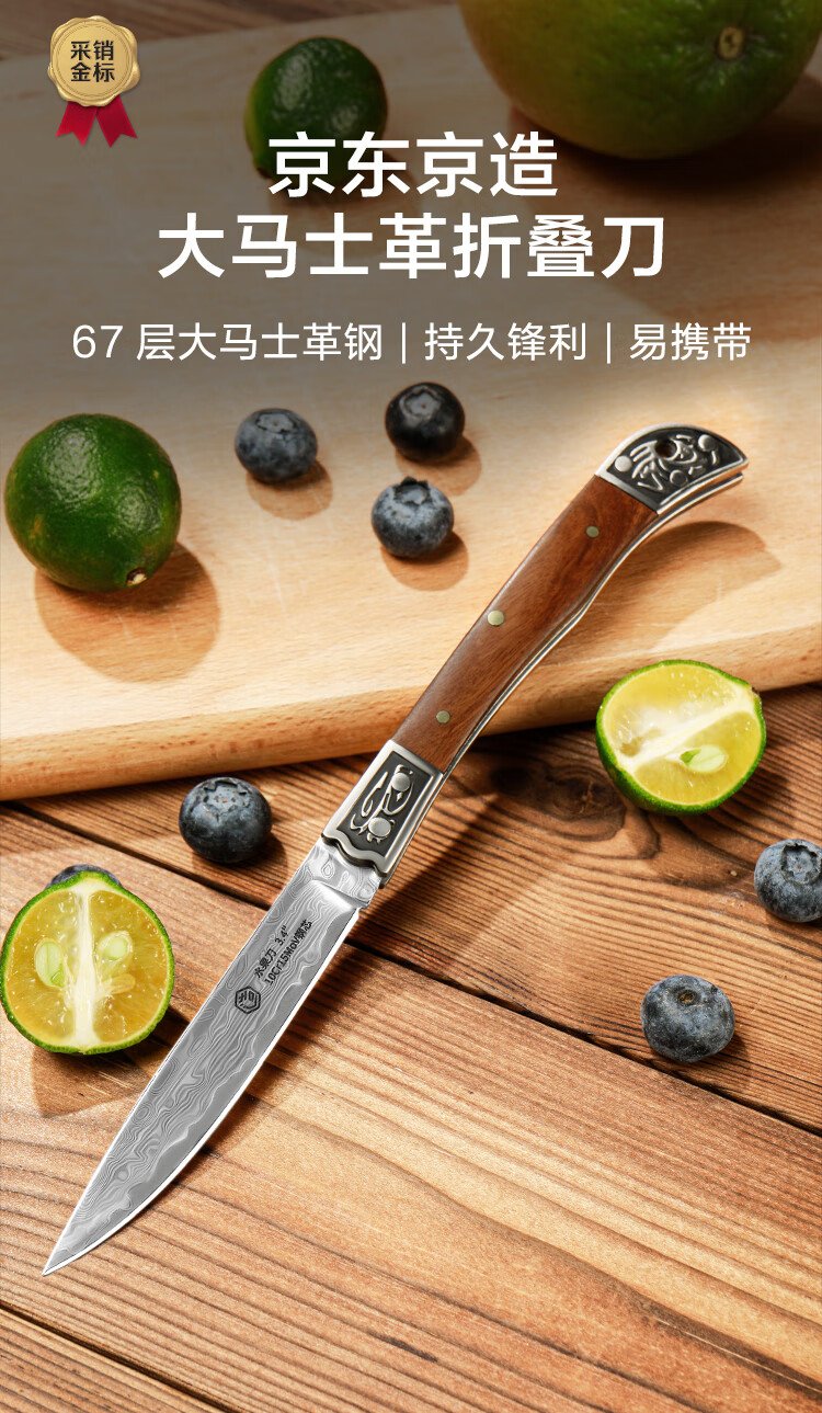 京东京造 水果刀 削刮皮家用多功能便携可折叠【67层大马士革钢】