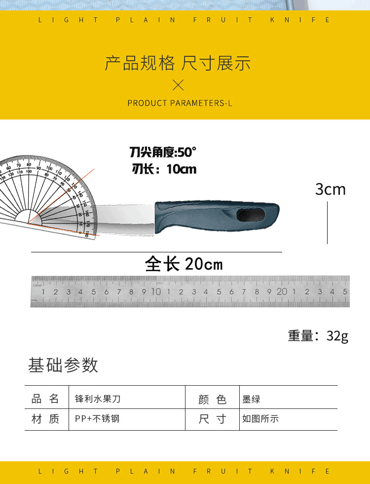 小天籁 水果刀削皮刀不锈钢家用便捷瓜果刀小刀带刀套 墨绿色水果刀单把