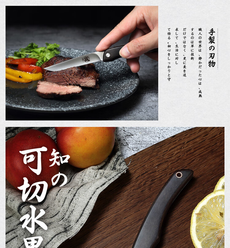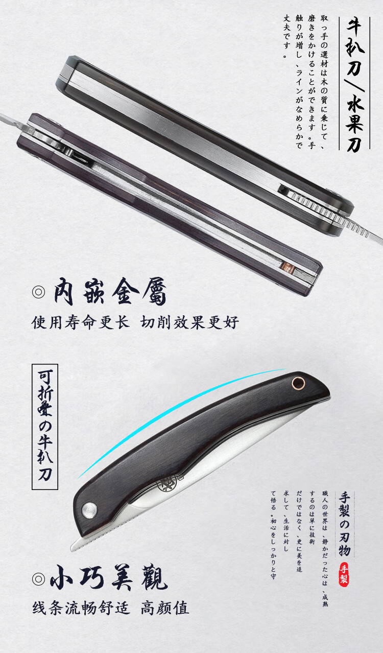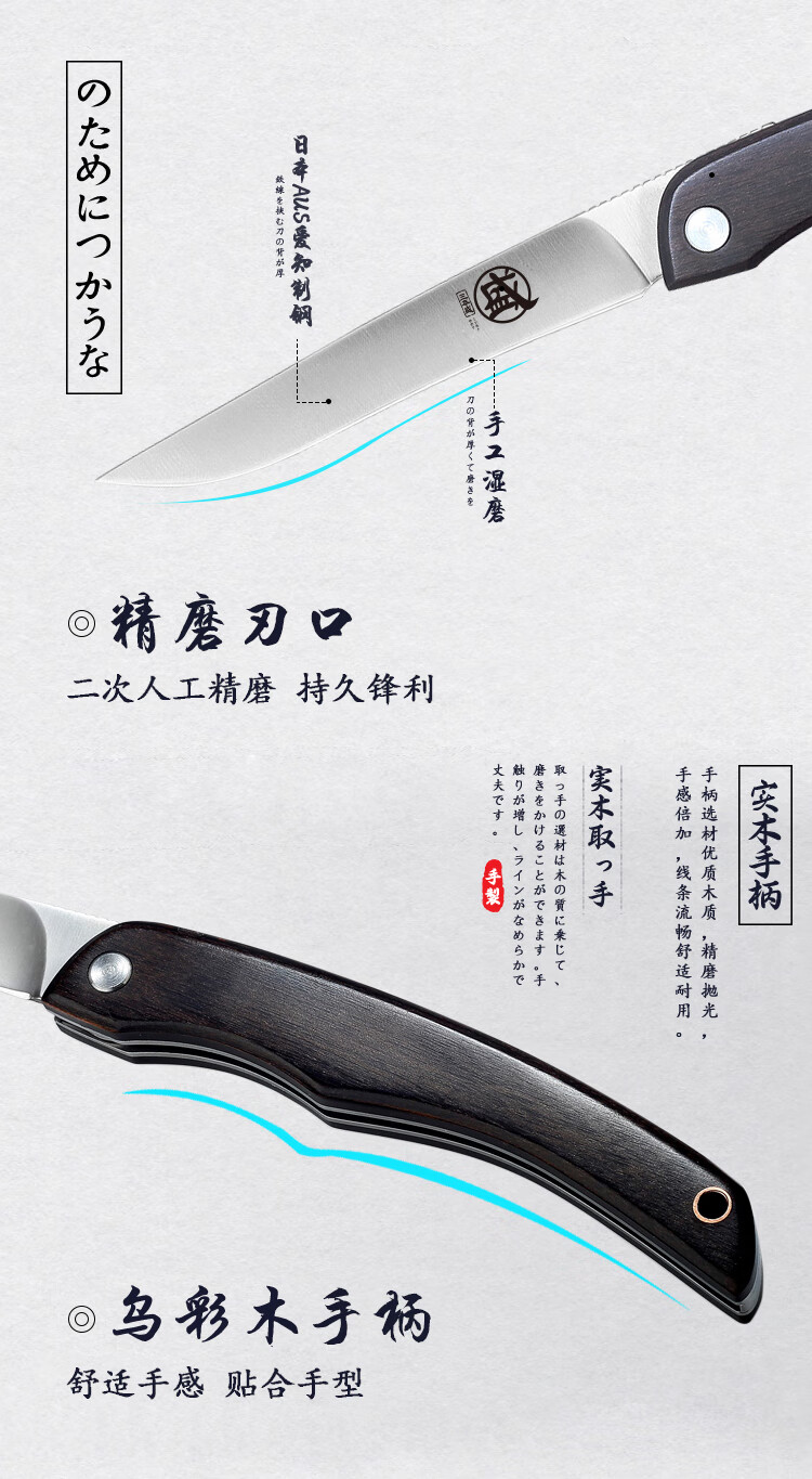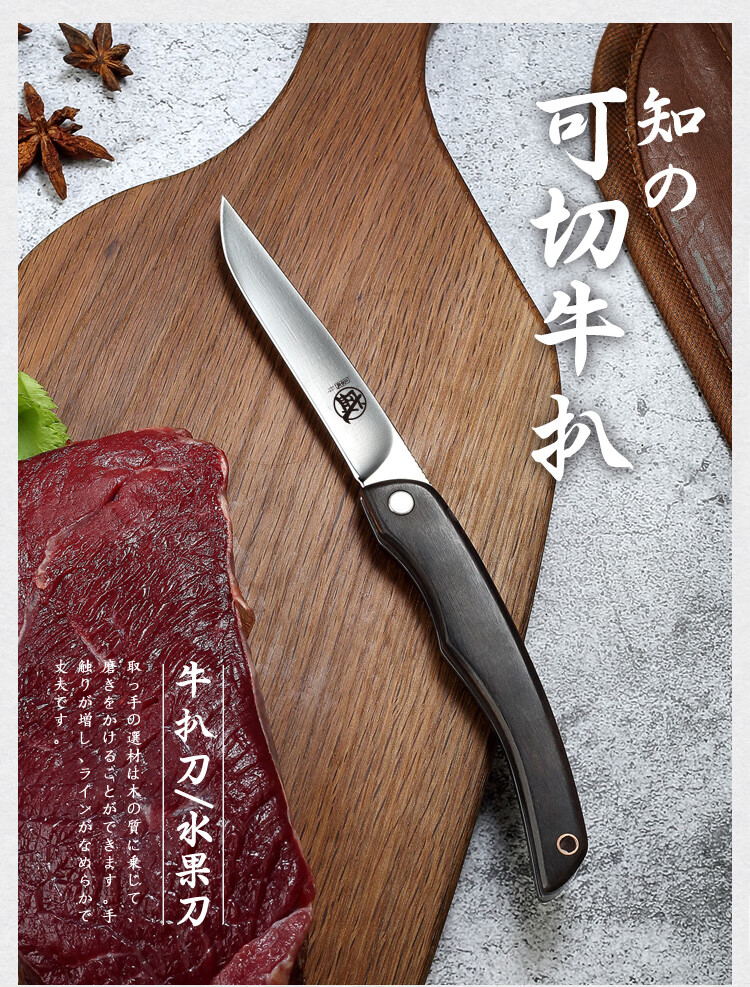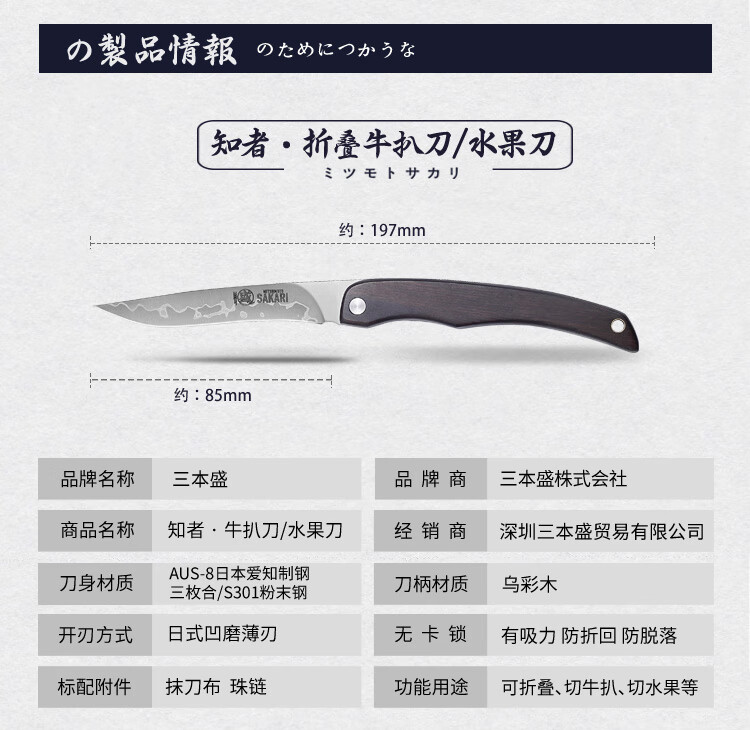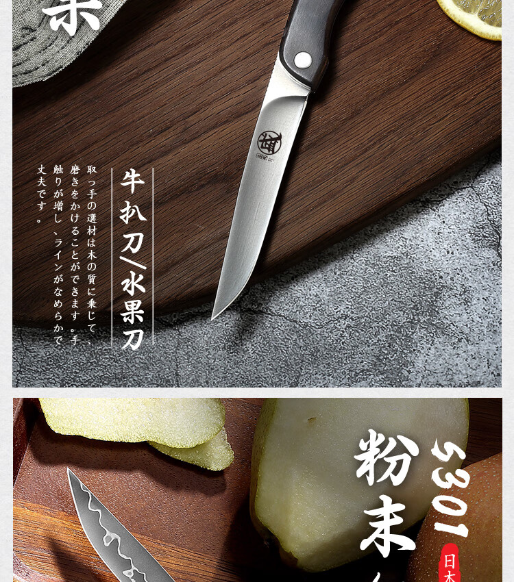 三本盛日本进口水果刀家用折叠小刀牛排刀多功能刀露营便携随身野餐刀具 三枚合/S301粉末钢:折叠水果刀
