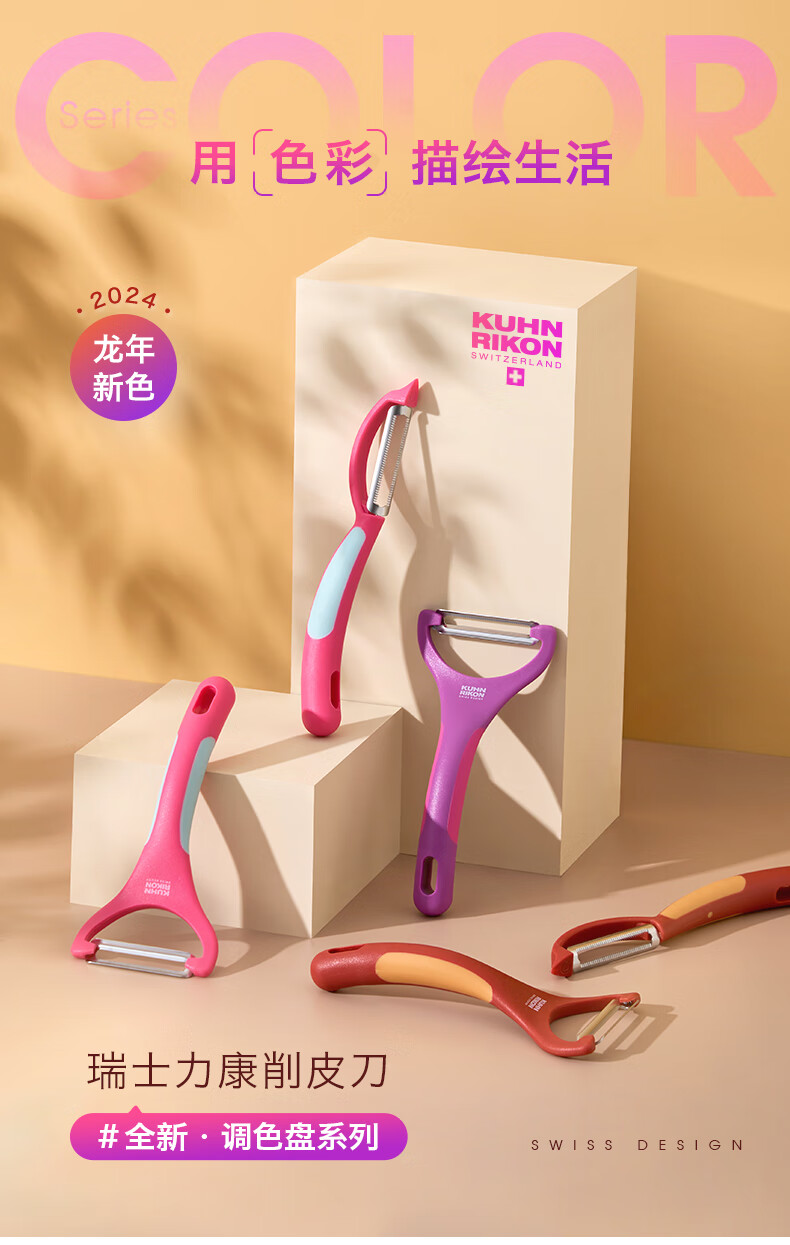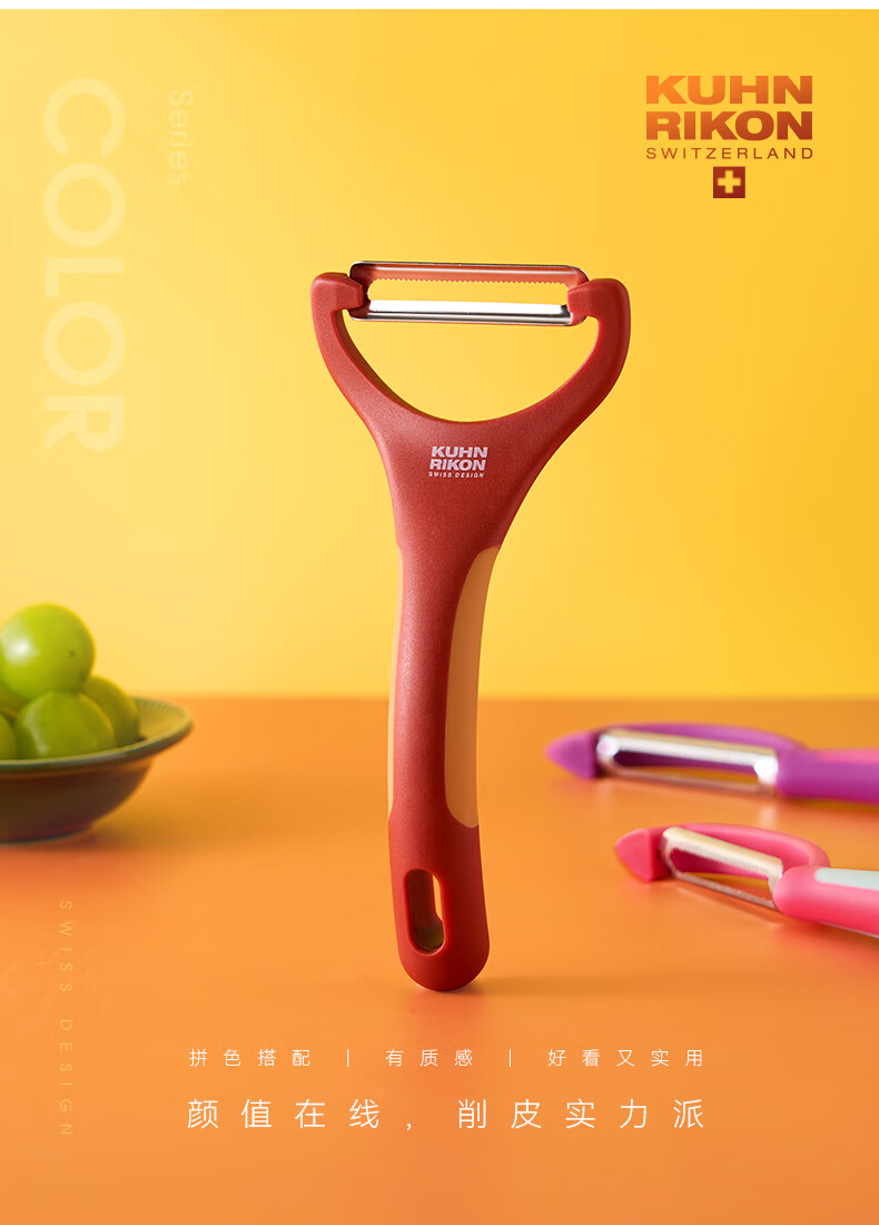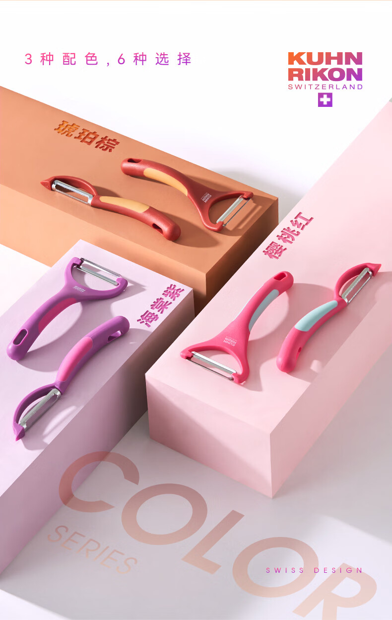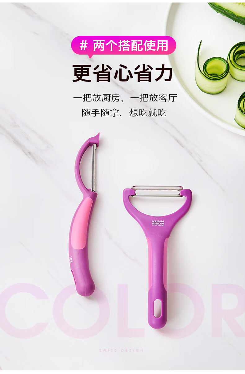 Schweizer KUHN RIKON Schälmesser, spezielles Küchenschälmesser, Apfel-, Wasserkastanien- und Schälwerkzeug, Melonenhobel, 2024 neues Produkt, Begonia Purple Y-Hobel + I-Hobel