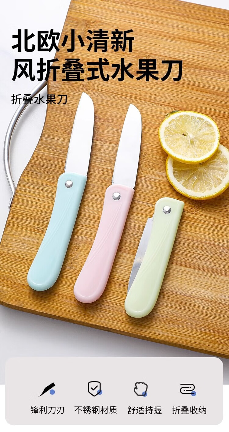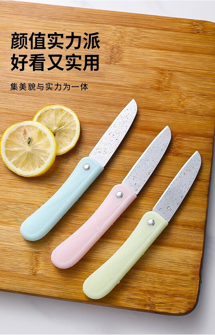 Klappbares Obstmesser aus Edelstahl, Haushaltsmesser für Melonen und Obst, Schälmesser für die Küche, tragbares Obst- und Gemüseschneidemesser für Studenten, klappbares Obstmesser aus Edelstahl – 3 Stück (verschiedene Farben)
