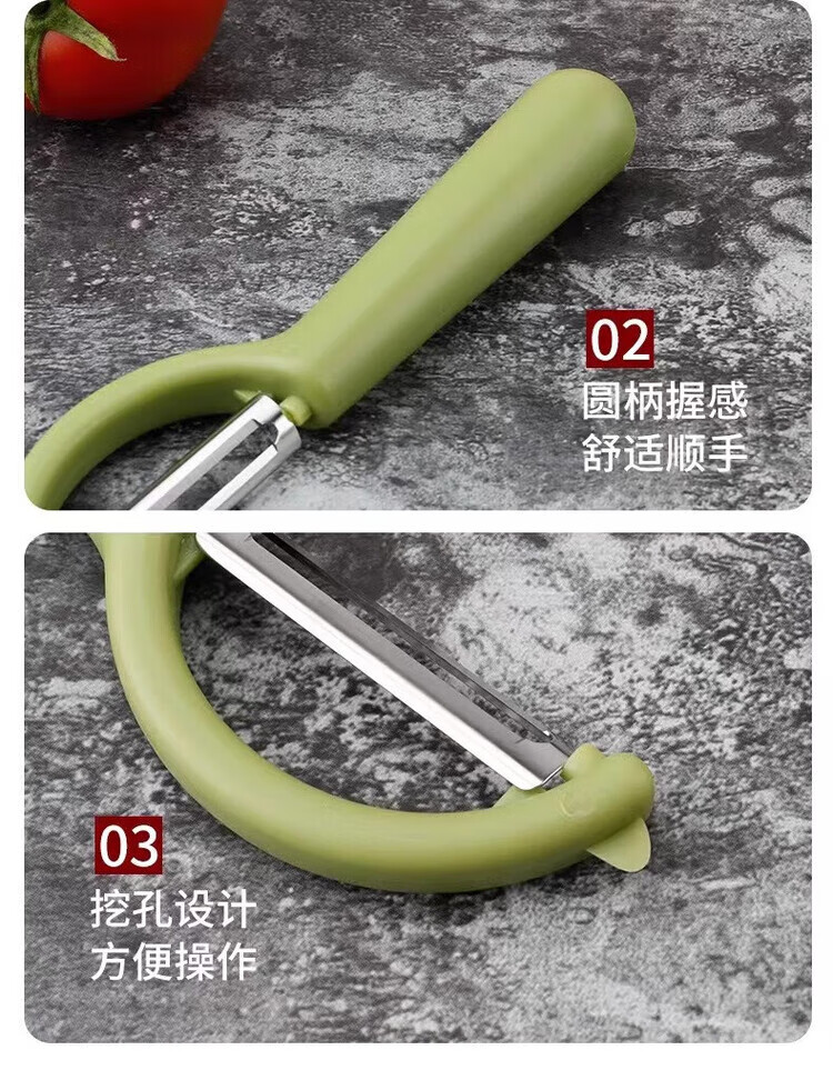 Couteau à éplucher domestique en acier inoxydable, cuisine, éplucheur spécial, dortoir, couteau à éplucher les fruits multifonctionnel, couteau à éplucher en acier inoxydable à long manche - 2 couleurs mélangées