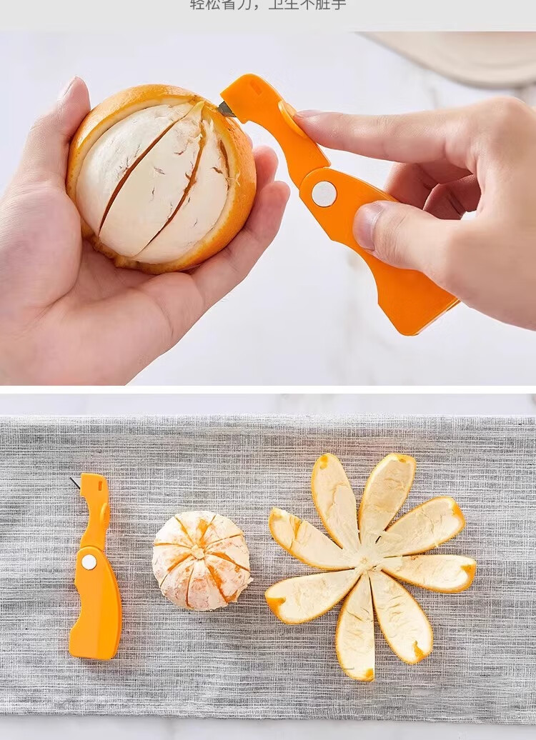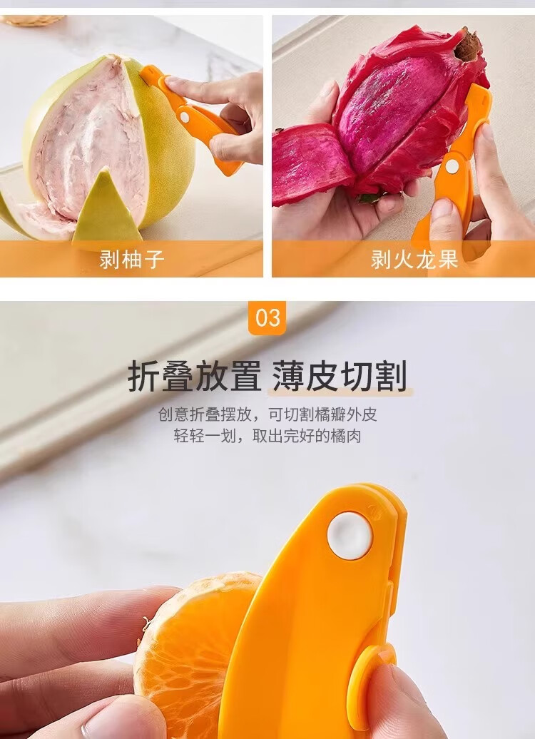 Éplucheur d'orange, artefact d'orange et de fruit du dragon à ouverture des doigts, épluchage de pamplemousse, épluchage de grenade, couteau à éplucher d'orange pliant, éplucheur d'orange - 2 pièces