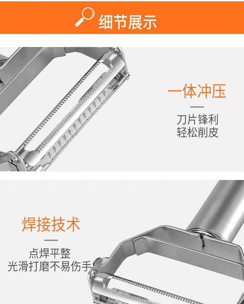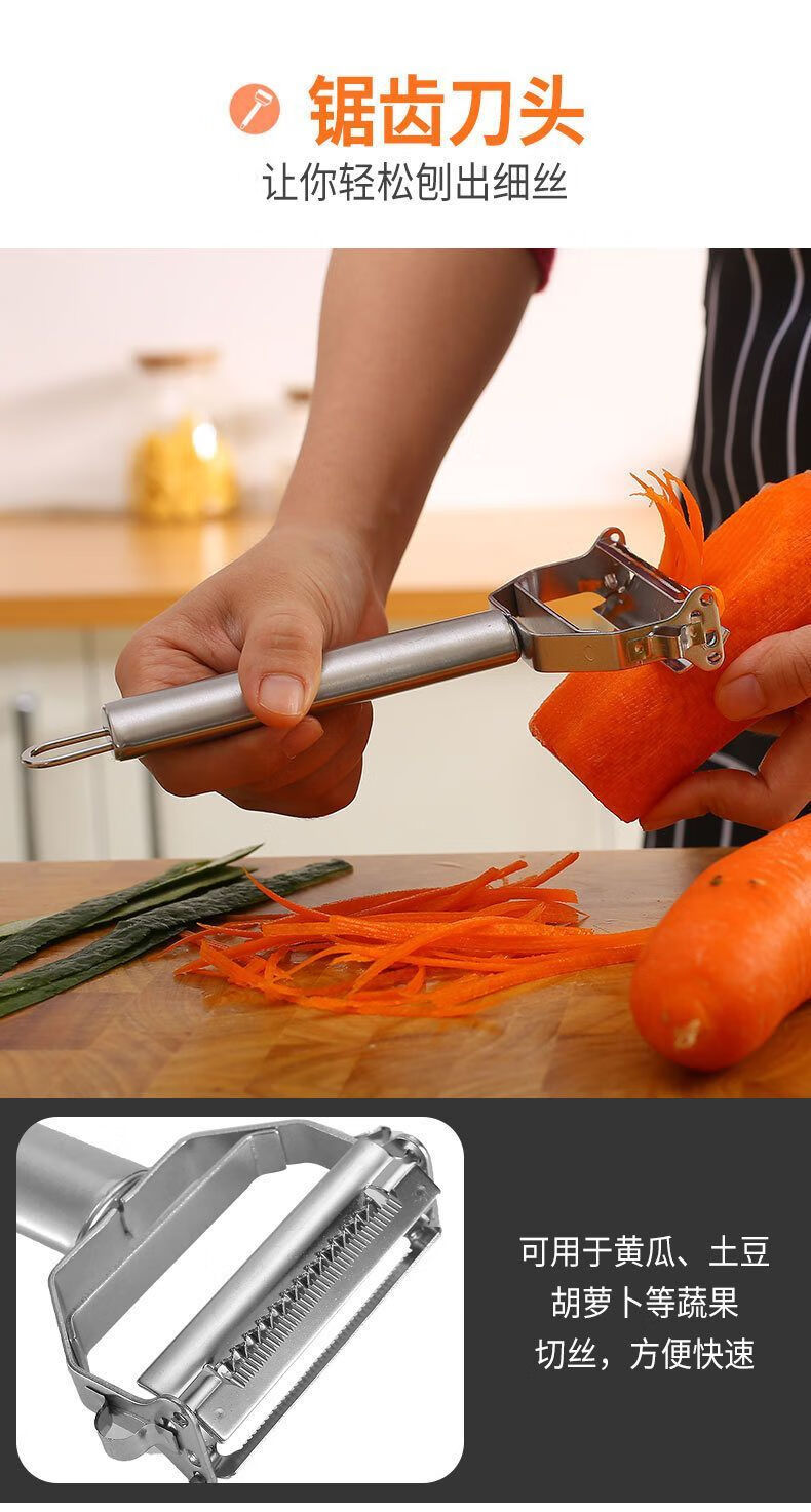 Peeling knife, stainless steel household multifunctional fruit, vegetable and melon slicing, potato peeling and grating artifact, double-sided peeler, peeling + grating 1 piece