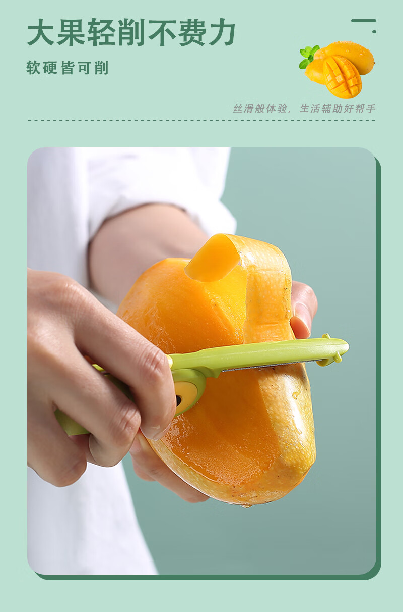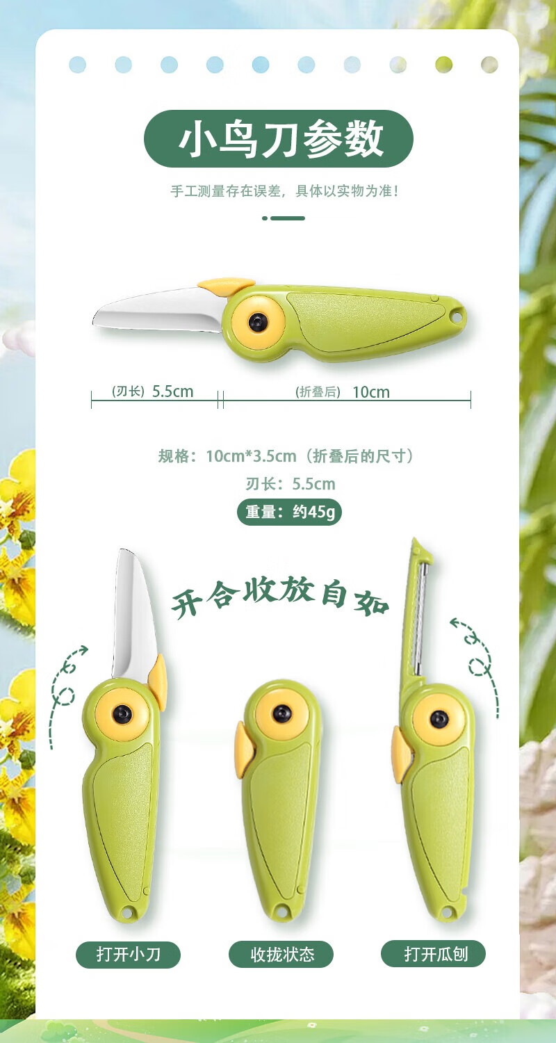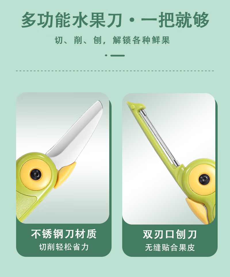 Couteau à fruits multifonctionnel pouvant passer l'inspection de sécurité, dispositif d'épluchage et de grattage, couteau à fruits portable pliable à double tête deux en un, pic vert, 1 paquet