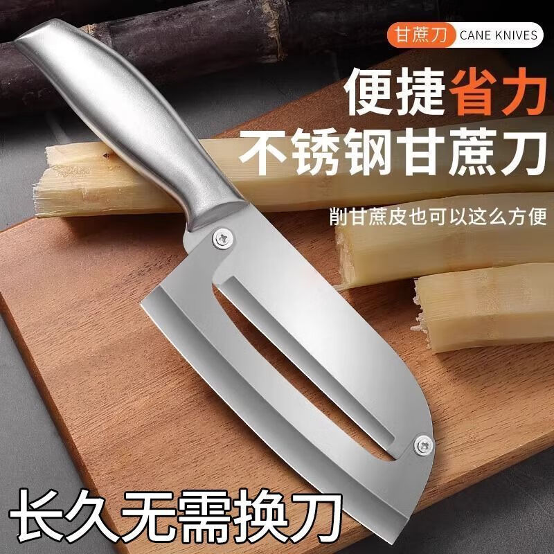 Schälmesser aus Edelstahl zum Schälen von Zuckerrohr, Küche, multifunktionales Schälen, spezielles Haushaltsartefakt, verdickter Salat, Kürbisschälen, vergrößertes und verdicktes, feines, geschmiedetes, scharfes Schälmesser aus Stahl, 1 Stück