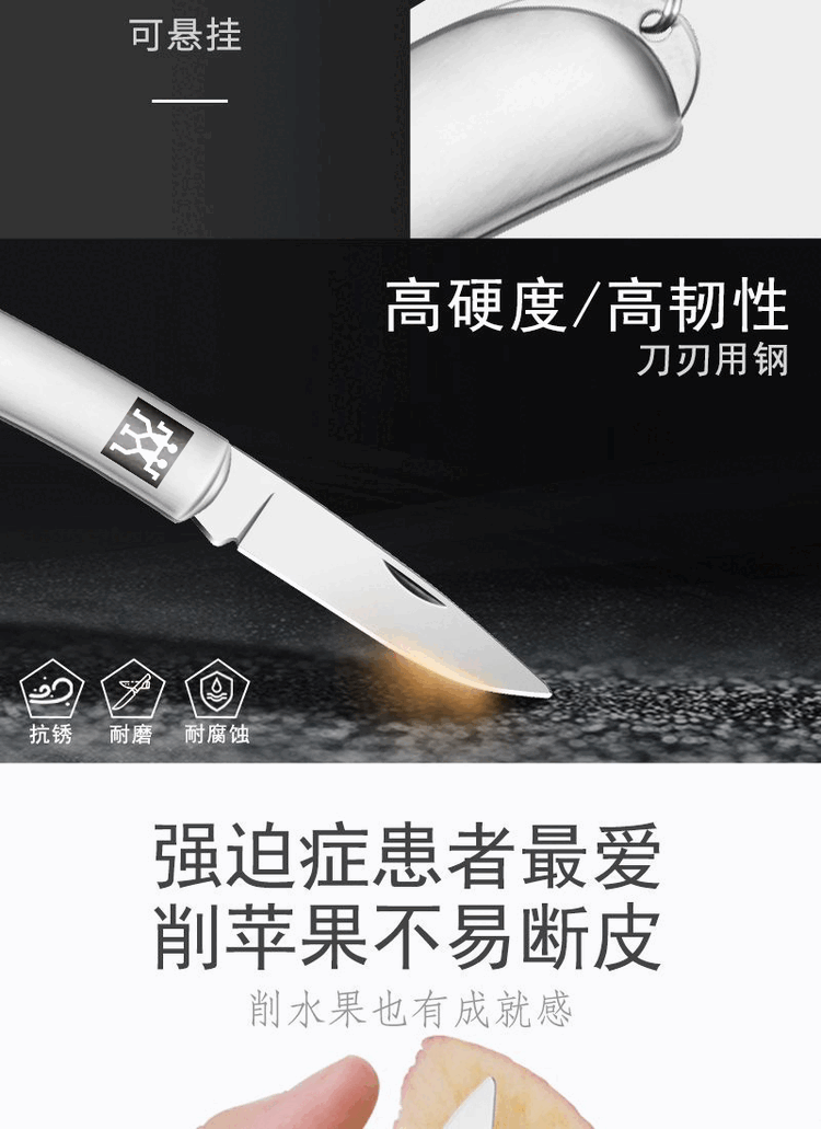 双立人(ZWILLING)德国不锈钢可折叠水果刀削皮刀家用便携式随身露营小刀 不锈钢水果刀 1把