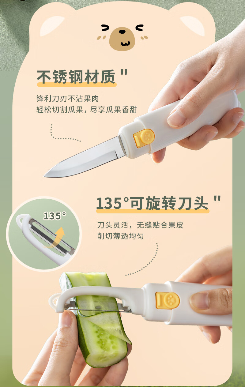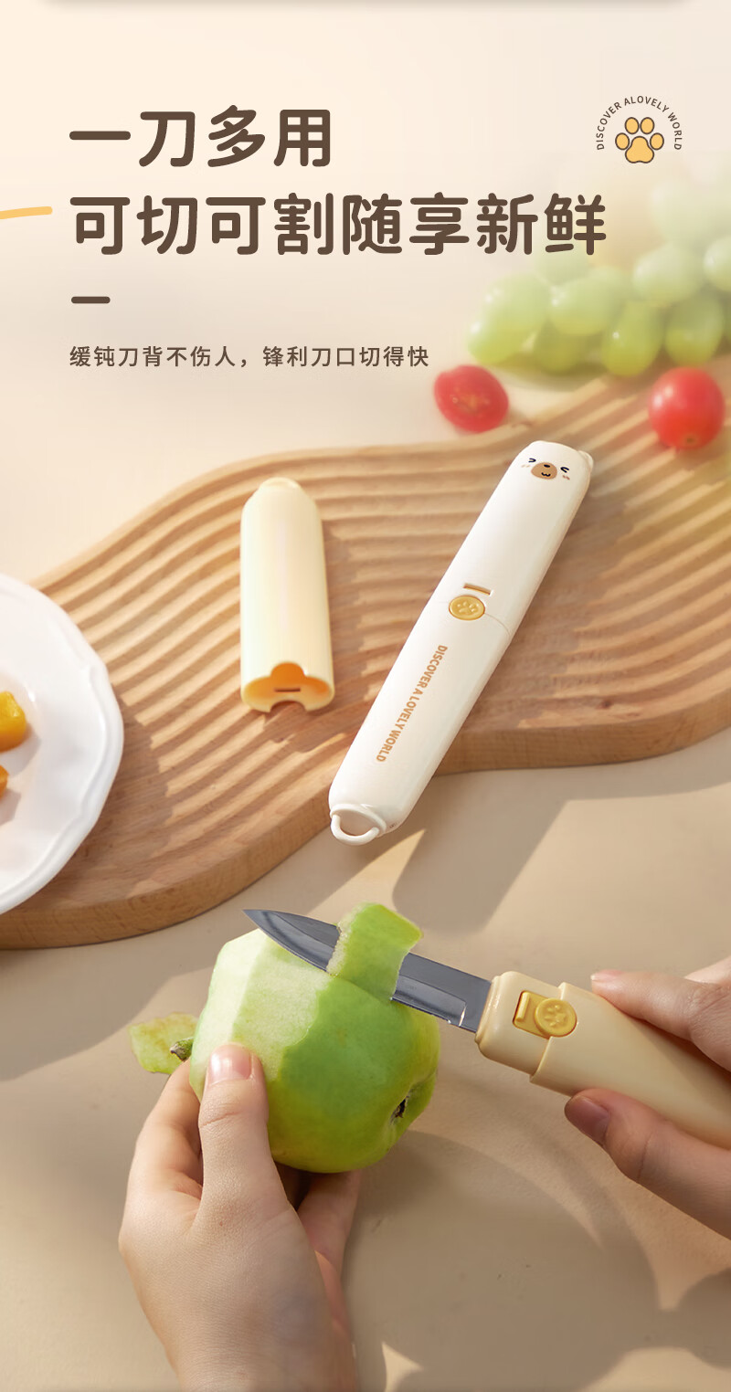 Couteau à fruits à double tête 2 en 1 à double pistolet, couteau d'office multifonctionnel pour fruits et légumes, dortoir d'étudiant cuisine éplucheur de melon de fruits portable 1 pièce couteau à fruits jaune fromage et couteau d'office autocollant gratuit