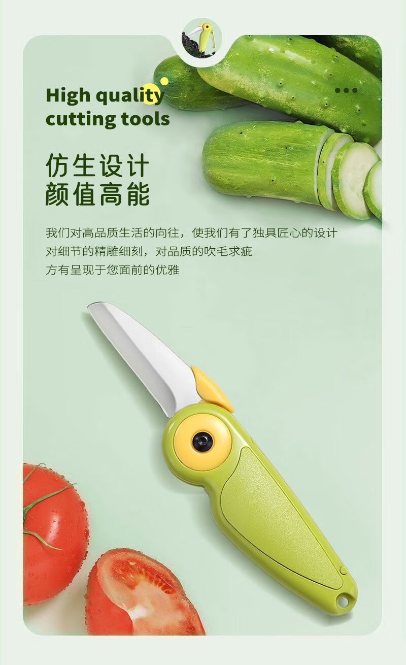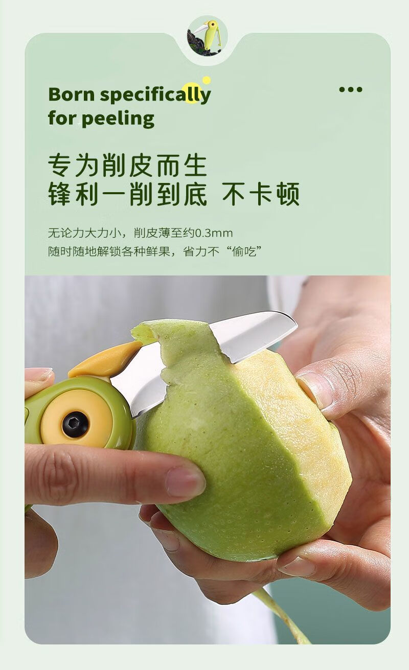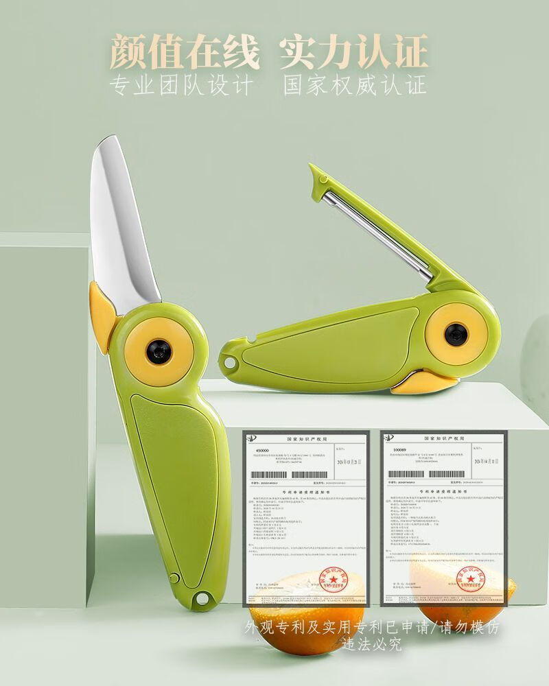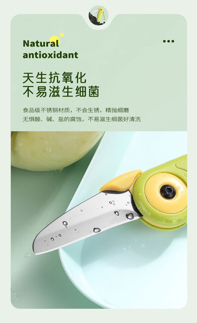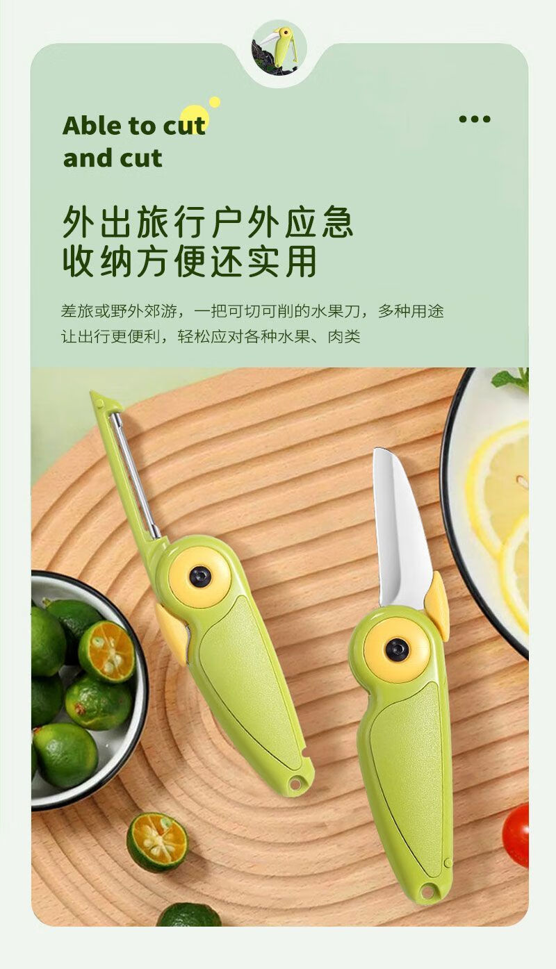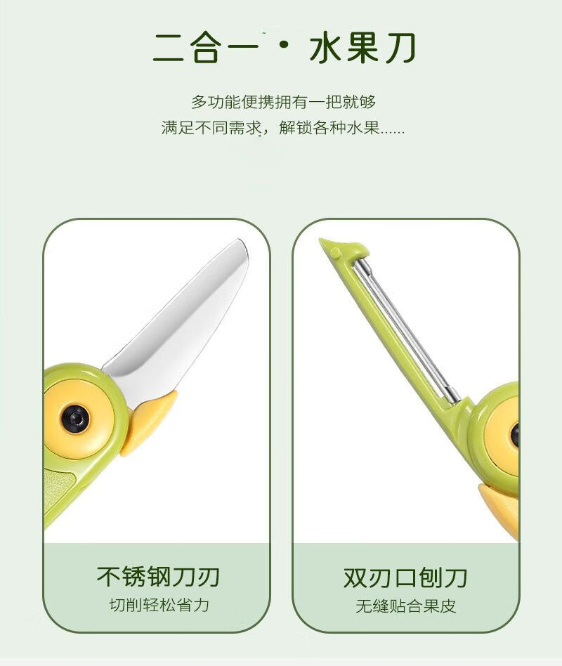 2-in-1-Obstmesser, das in Hochgeschwindigkeitszügen und Flugzeugen verwendet werden kann, kreativer tragbarer Zug-Edelstahlschäler für Geschäftsreisen, 2-in-1-Doppelkopf-Melonen- und Obstmesser, 1 Packung