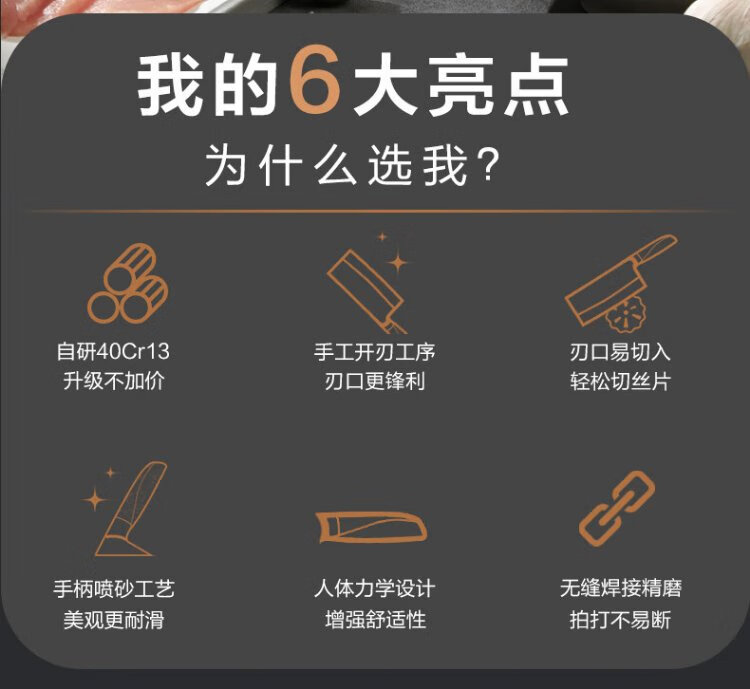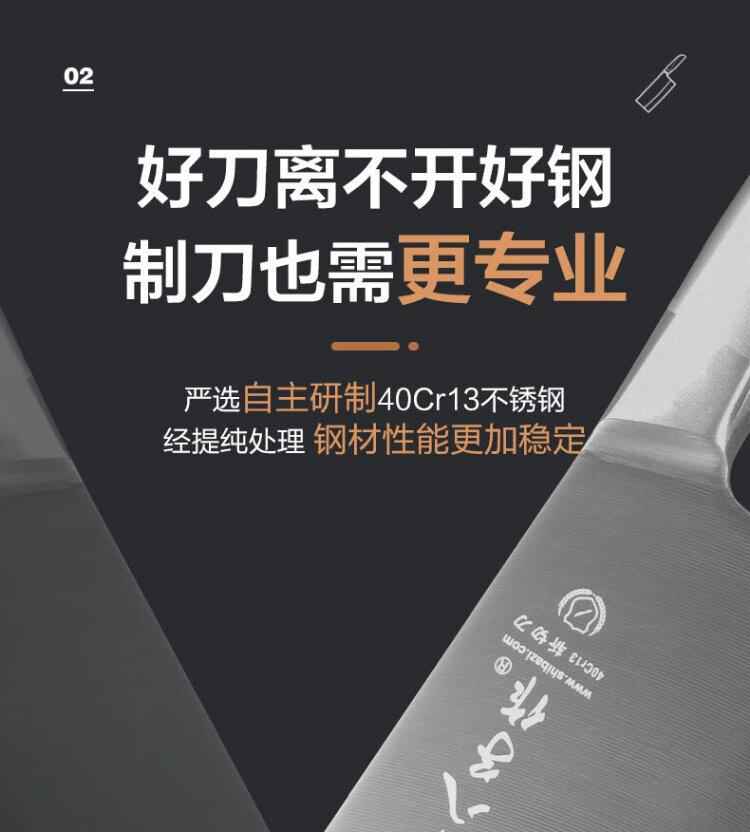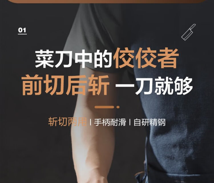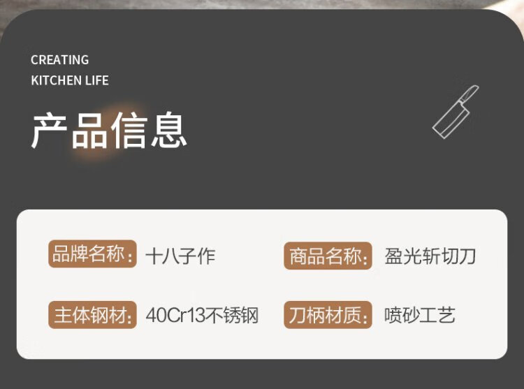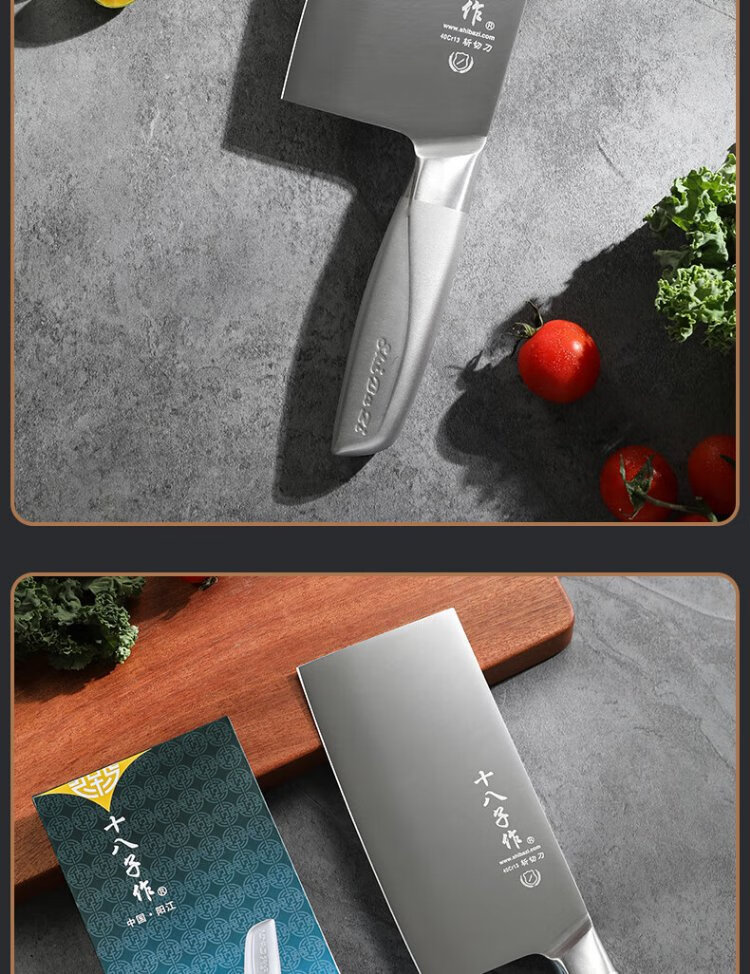 十八子作不锈钢家用菜刀 耐滑手柄刀具盈光斩切刀SL1703-AB【彩盒装】