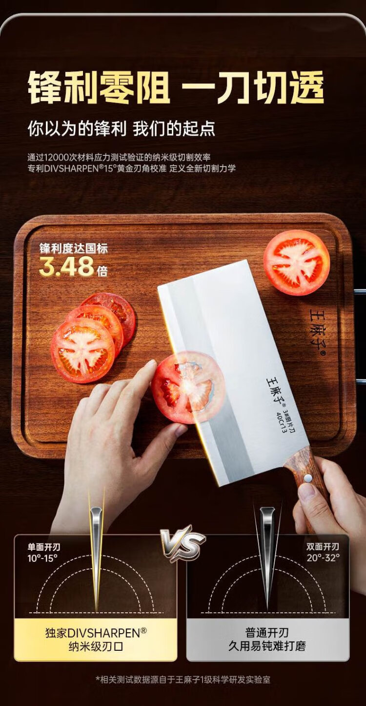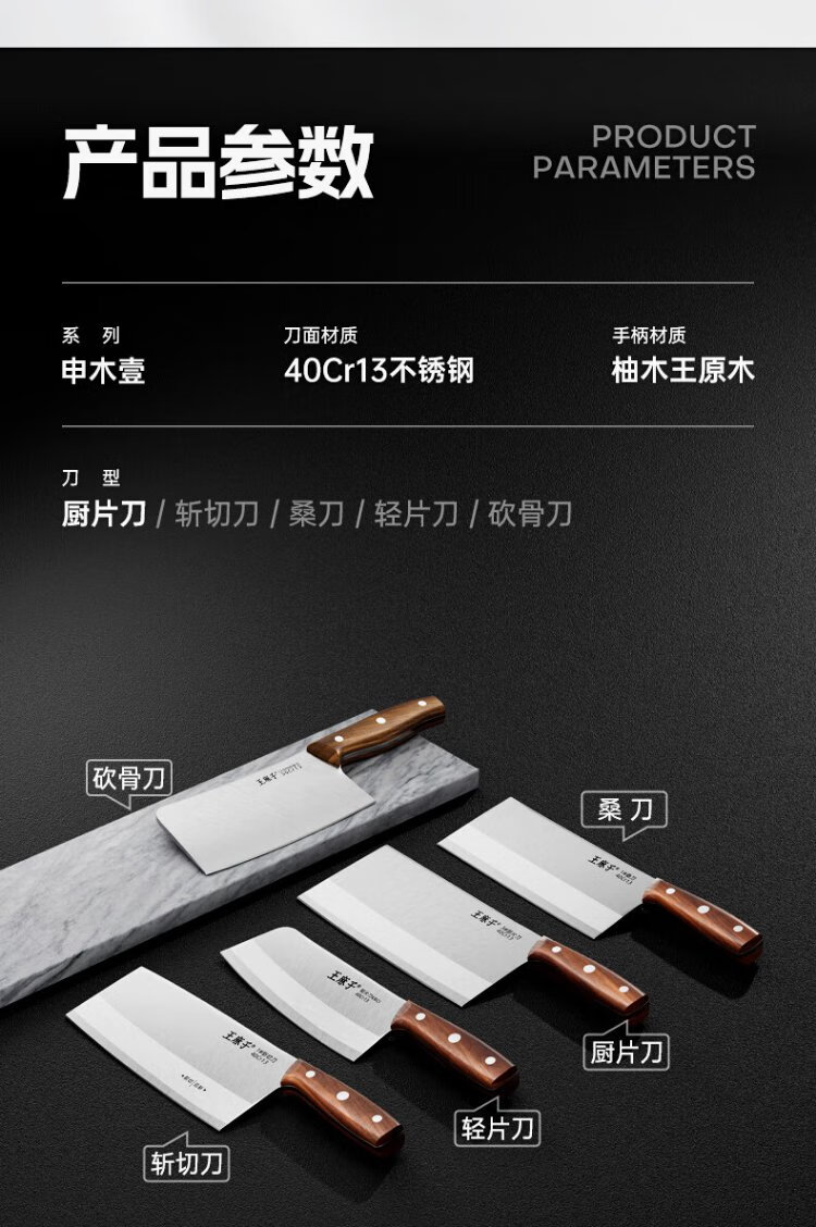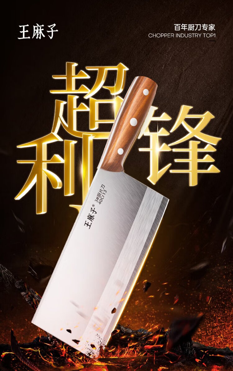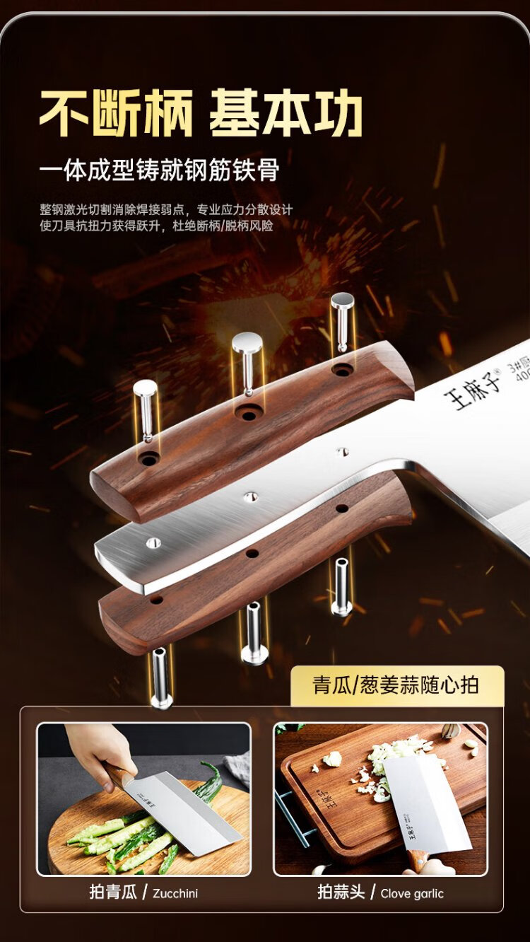 王麻子菜刀厨师专用厨片刀3号 切片切肉锻打刀具厨房锋利家用切菜刀