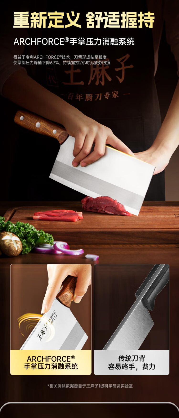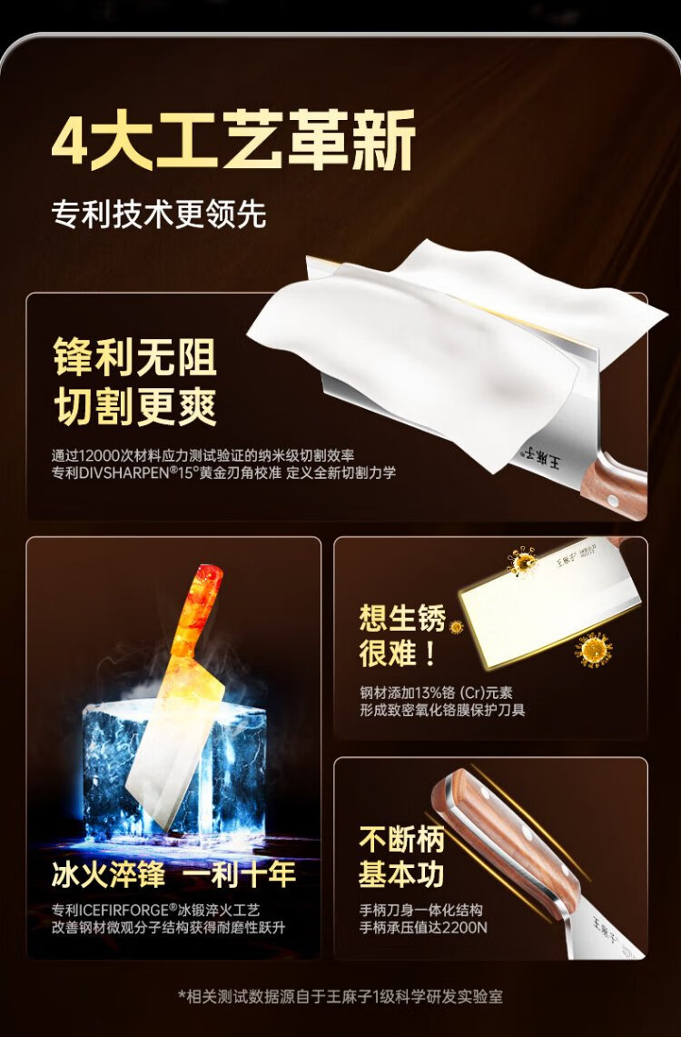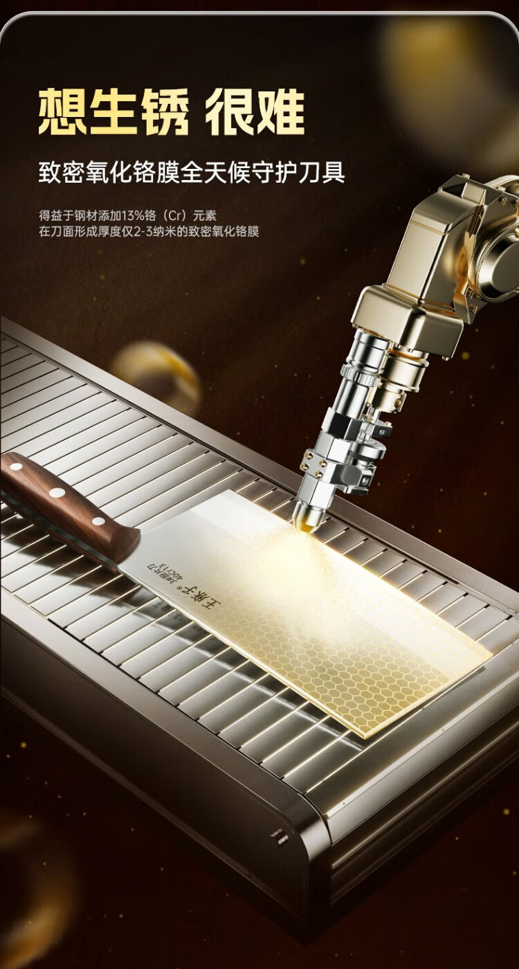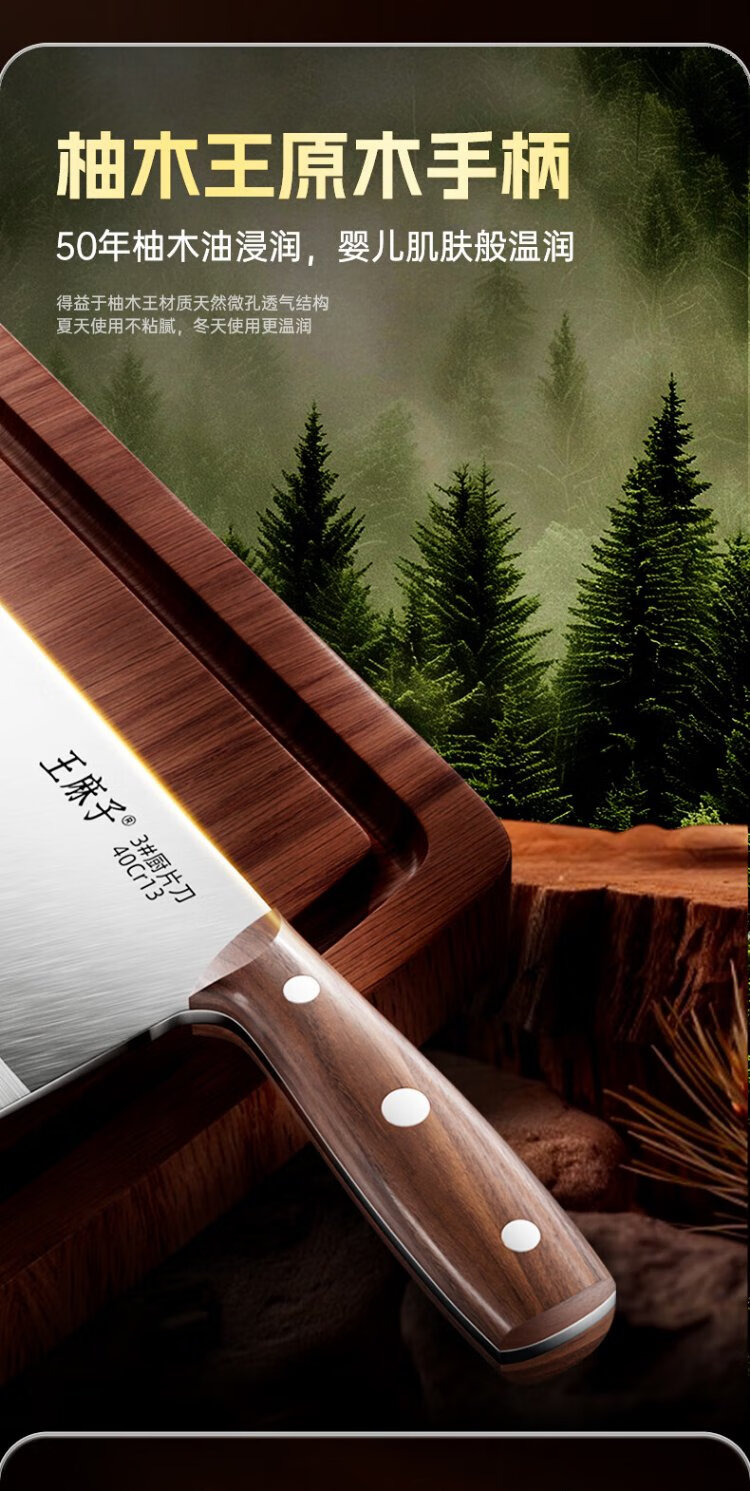 王麻子菜刀厨师专用厨片刀3号 切片切肉锻打刀具厨房锋利家用切菜刀