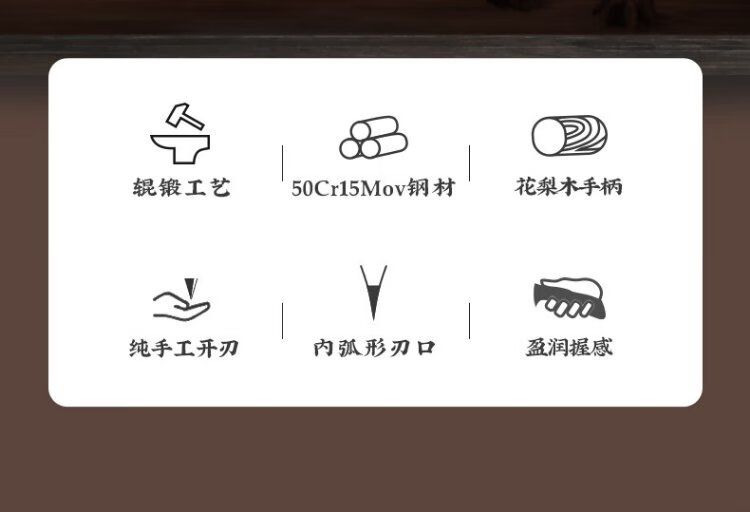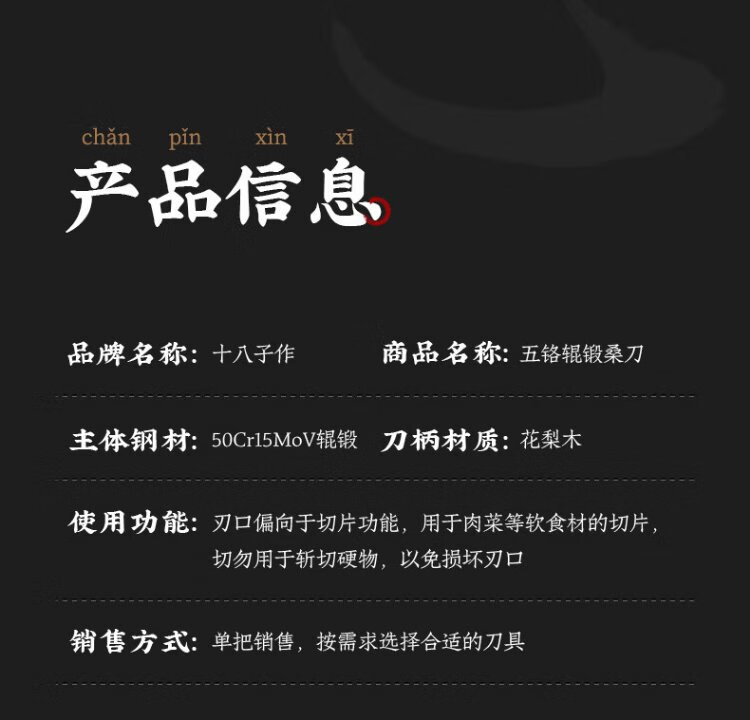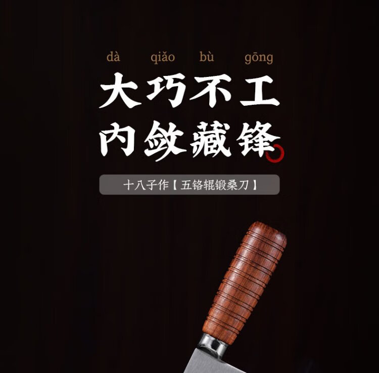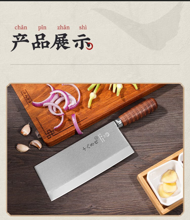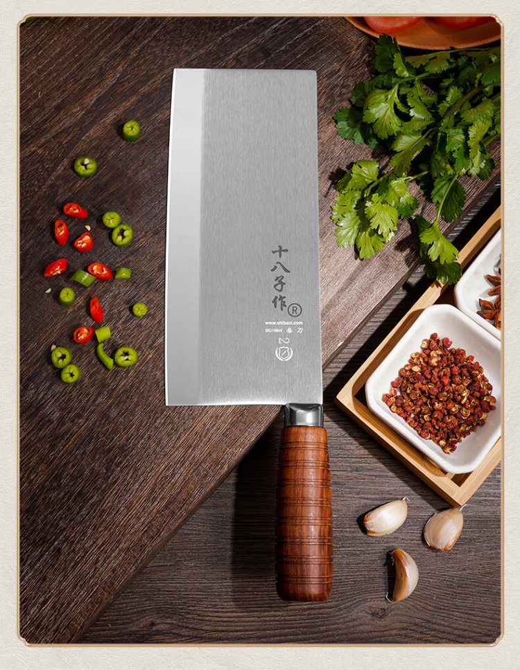 十八子作专业中式厨师刀具 辊锻工艺花梨木柄菜刀2号桑刀S318-S2