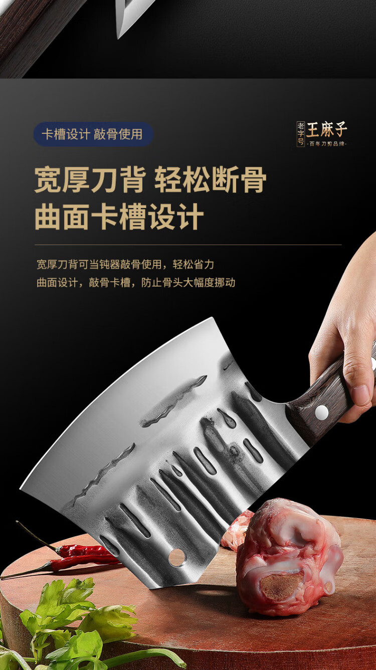王麻子 砍骨刀家用锻打菜刀斩骨刀斧加重剁骨刀屠宰专用斩大骨牛骨刀