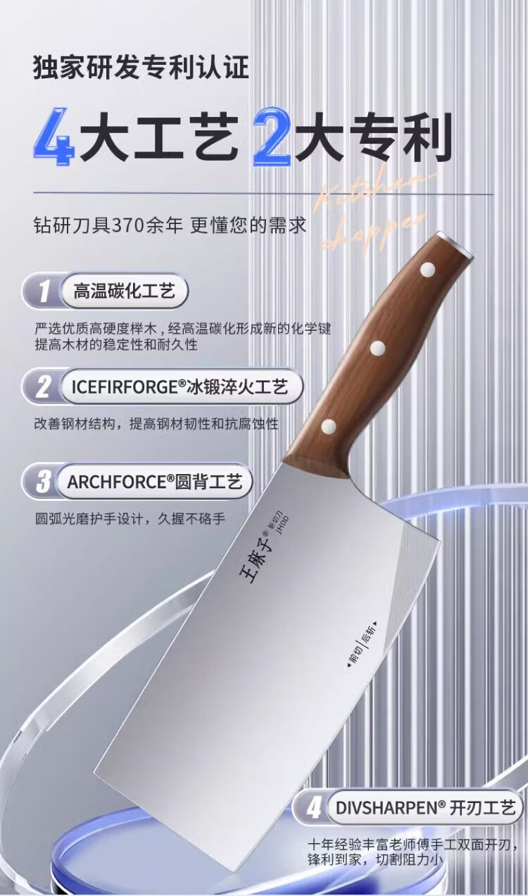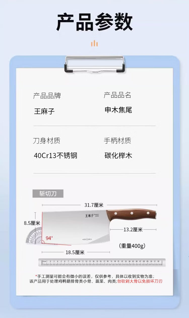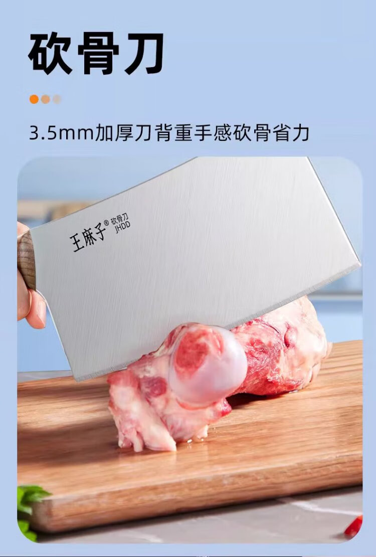 王麻子菜刀刀具不锈钢切菜刀砍骨刀家用锻打刀斩切两用刀