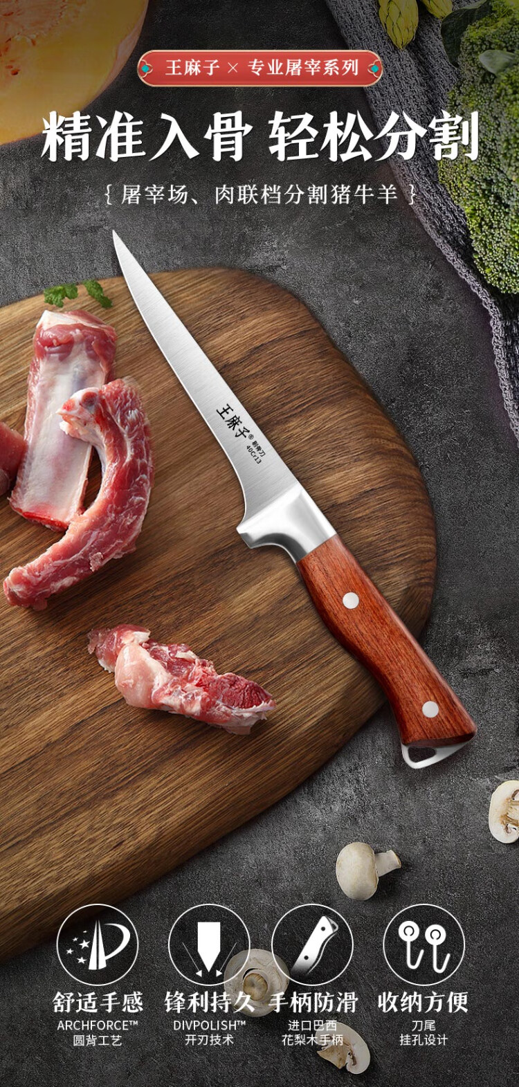 王麻子剔骨分割刀 屠宰专用剔骨肉刀尖刀牛排手把肉小刀