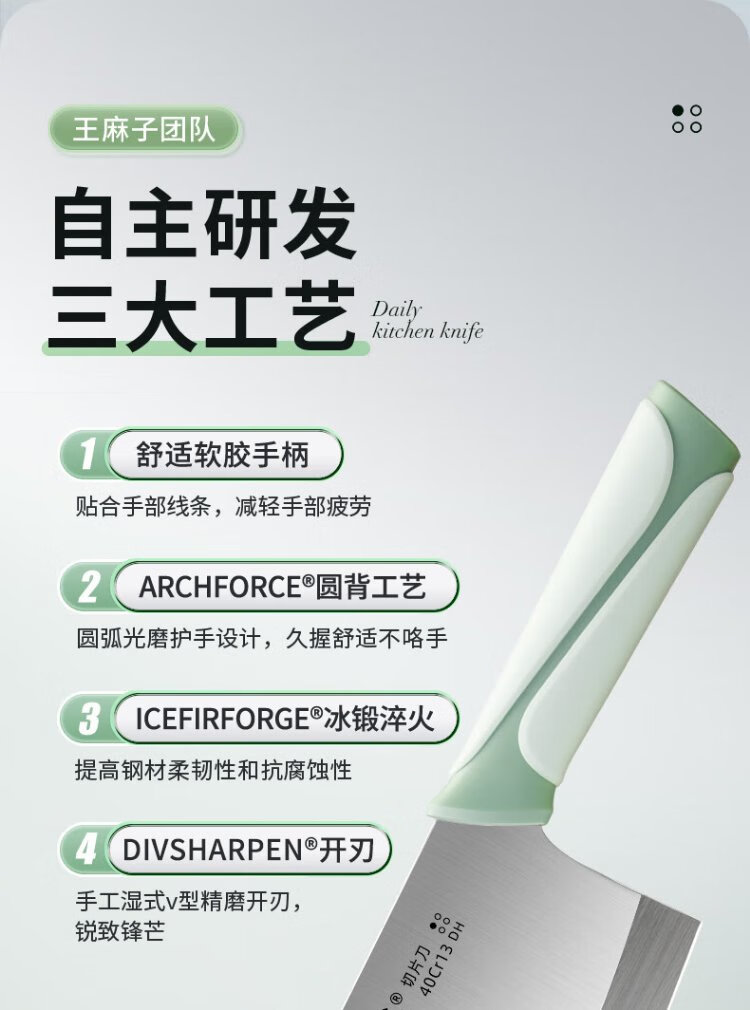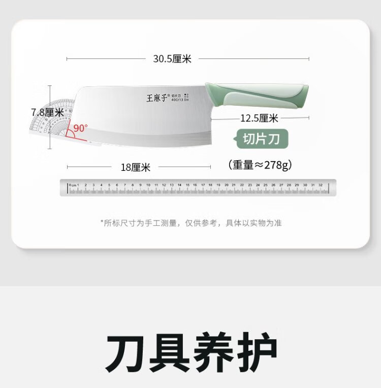 王麻子刀具菜刀 厨房家用锻打不锈钢女士切肉切片切菜刀